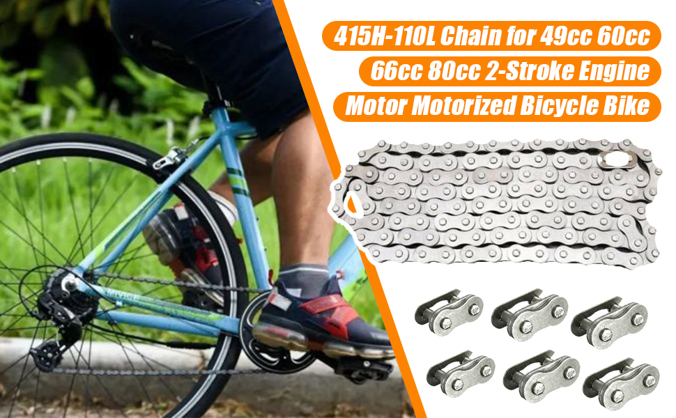 سلسلة 415H-110L لـ 49cc 60cc 66cc 80cc 100cc محرك ثنائي الأشواط محرك دراجة بمحرك سلسلة متينة أجزاء سباق عالية الطاقة