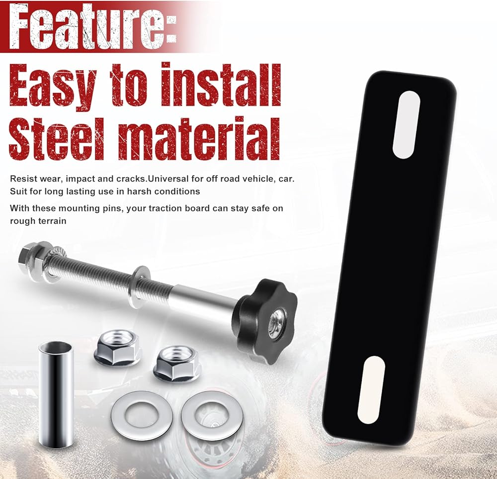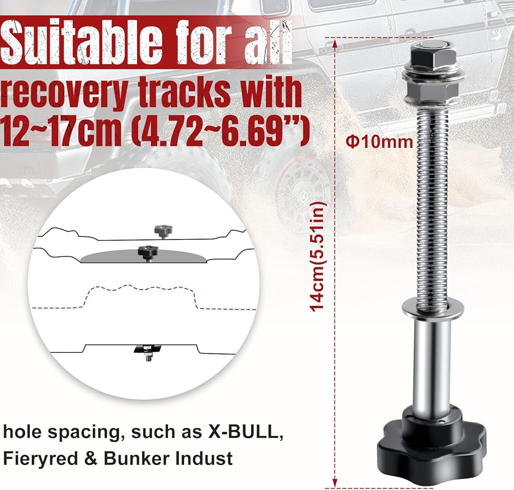 【سهلة الاستخدام】يجب أن تكون لوحات الجر جزءًا من كل معدات الطرق الوعرة لأنها تخلصك من المشاكل، ويمكن أن تساعدك دبابيس التثبيت القوية هذه على تثبيتها على سيارتك. باستخدام دبابيس التثبيت هذه لتثبيت لوحات الجر لأسفل، يمكنك بسهولة تركيب لوحات الجر الخاصة بك في مجموعة متنوعة من المواقع على سيارتك، أو أي رف سقف أو إطار سرير شاحنة مزود بفتحات M10.