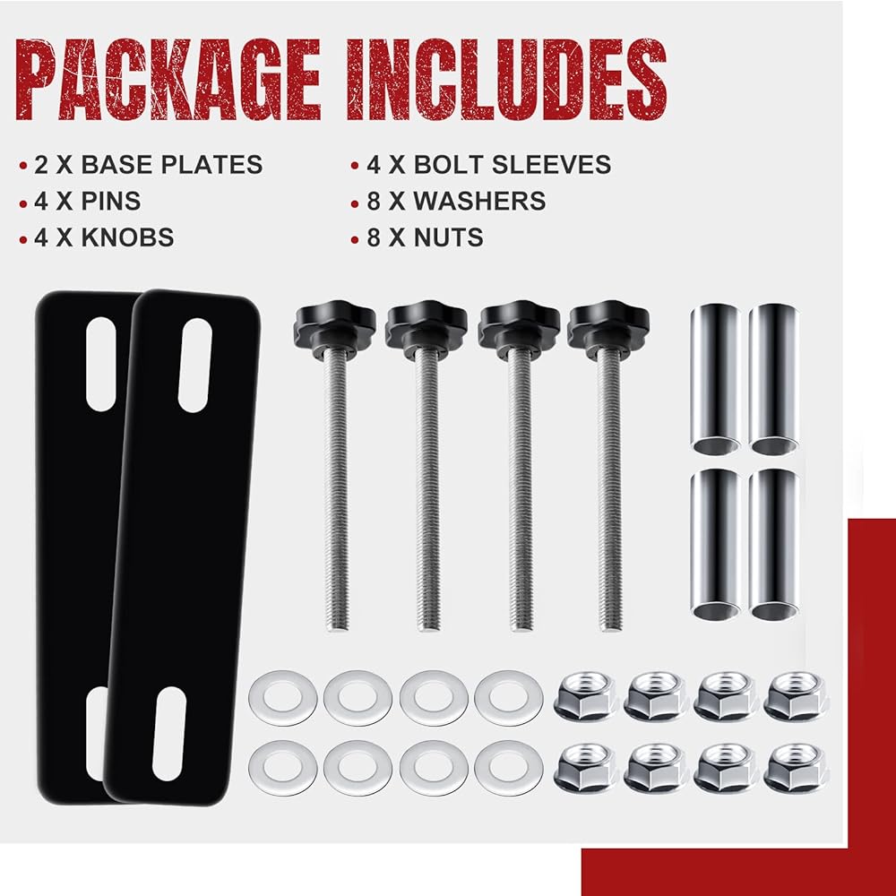 【استخدام واسع】تساعدك مجموعة تركيب لوحة الجر على تخزين لوحات النقل الخاصة بك بطريقة أنيقة وأنيقة. تعتبر مجموعة تركيب لوحة الجر هذه مناسبة لجميع قضبان الاسترداد ذات مسافة 12 إلى 17 سم (4.72 إلى 6.69 بوصة)، مثل X-BULL وFieryred وBunker Indust. يبلغ طول دبابيس التثبيت هذه للوحة الجر 14 سم (5.51 بوصة) ويمكنها حمل لوحتي جر بشكل مثالي.