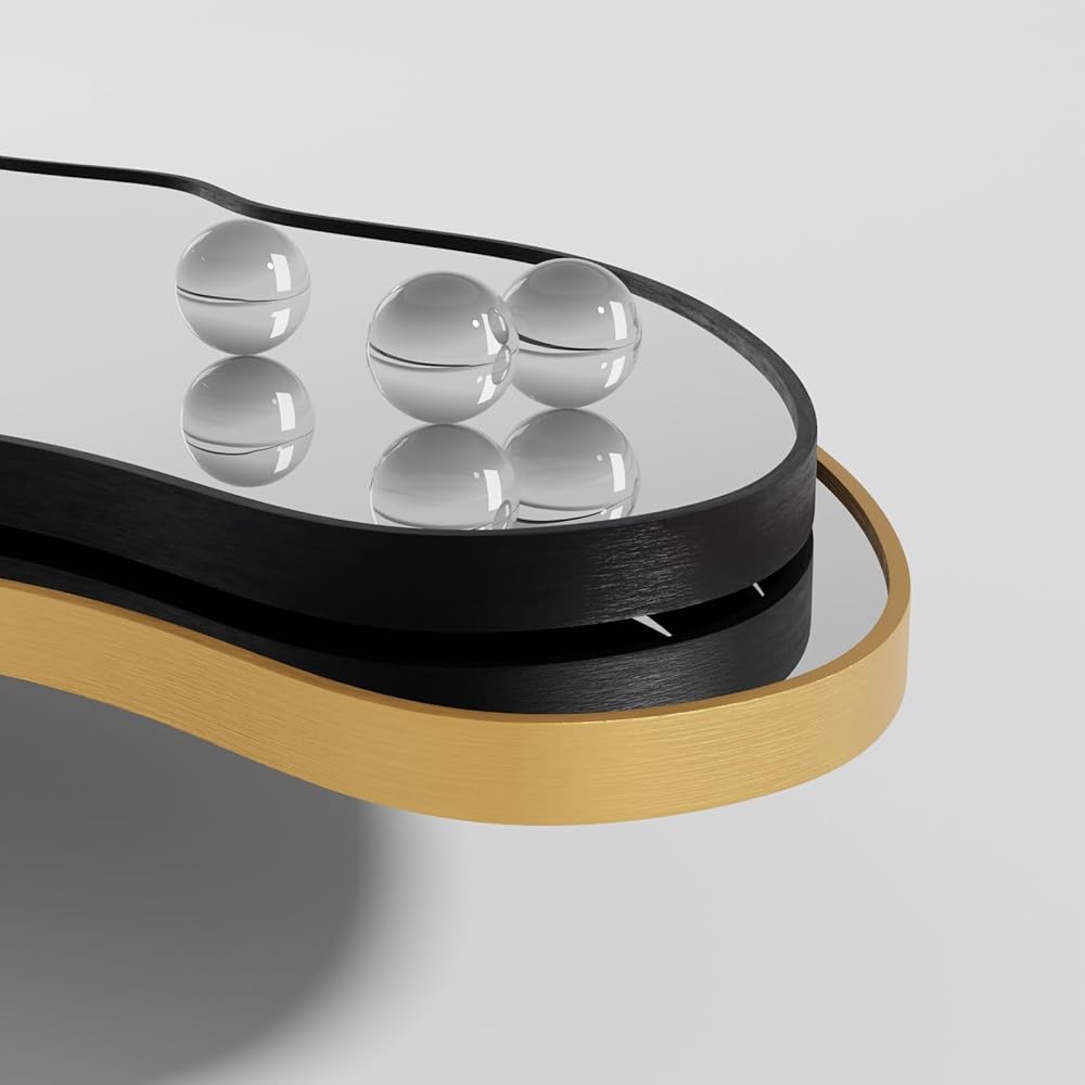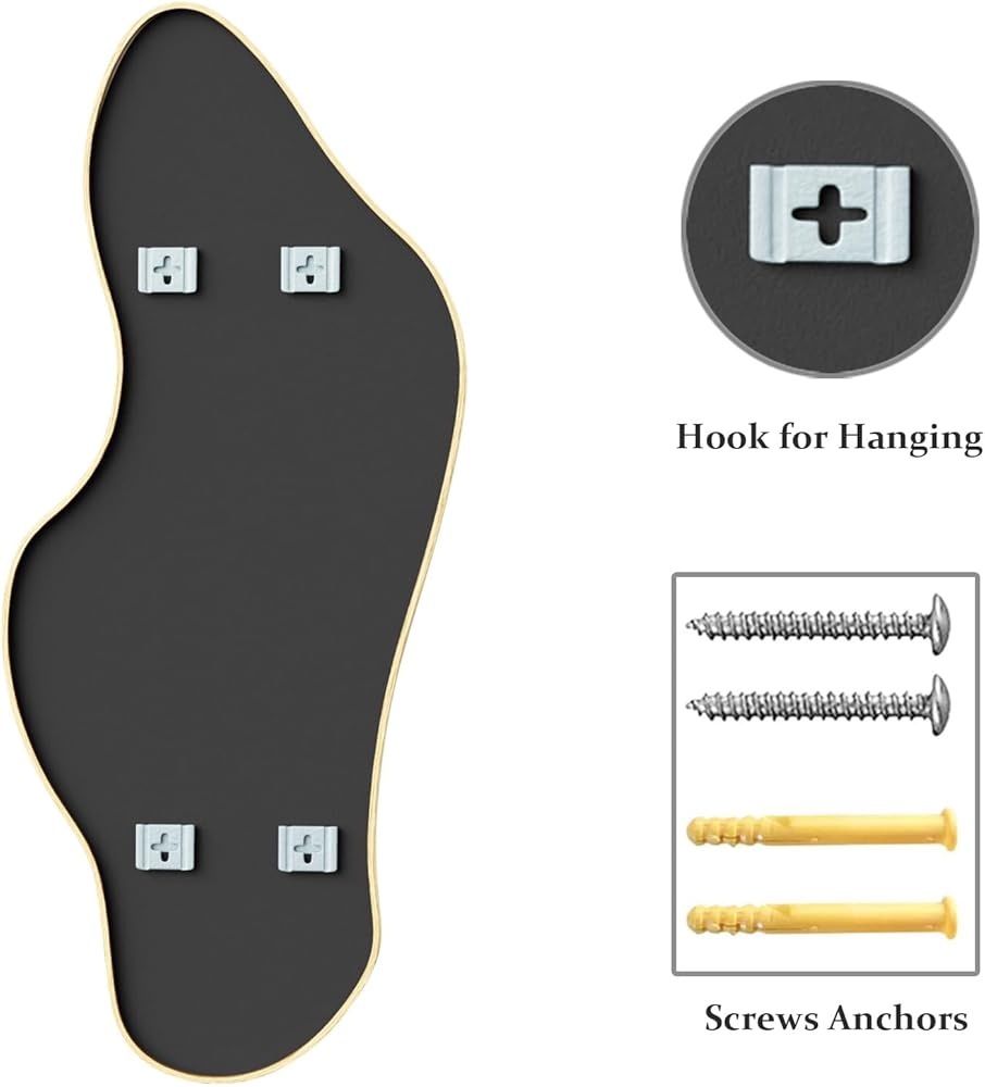 • جودة فاخرة - تم تصميم مرآة الحائط غير المتماثلة مع الاهتمام بالتفاصيل، بدءًا من اختيار المواد وحتى عملية التصنيع، مما يضمن منتجًا عالي الجودة ويدوم طويلاً. يضمن الإطار المصنوع من الألومنيوم المتانة والملمس مع الحفاظ على المظهر الأنيق