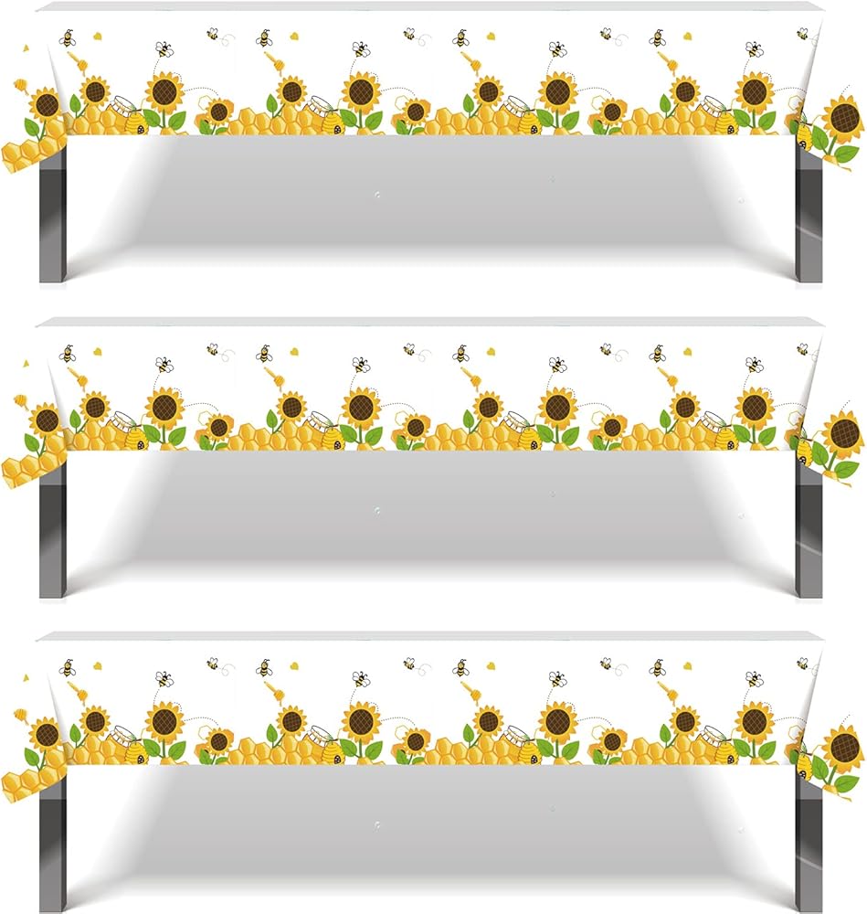 3 عبوات من مفرش المائدة بامبليبي عباد الشمس - مقاس 86.6 × 52 بوصة، غطاء طاولة بلاستيكي مطبوع للاستعمال مرة واحدة، عسل النحل للأطفال، مستلزمات حفلات أعياد الميلاد in Kuwait