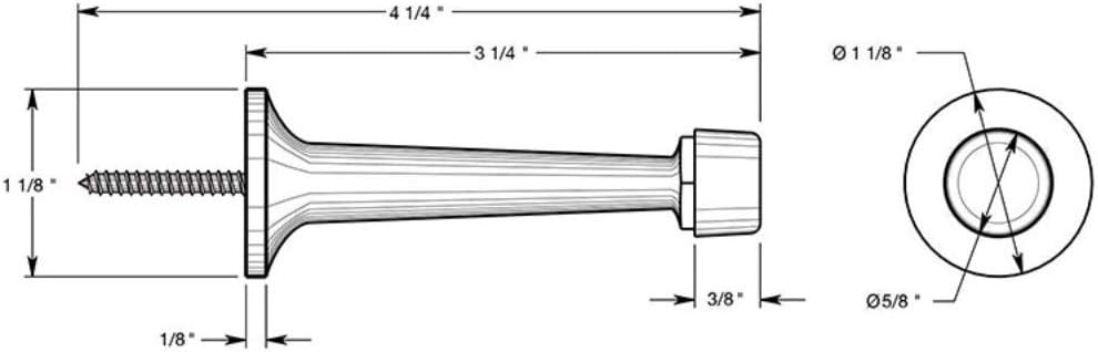 Deltana BDS30U3-UNL 3-1/4" Baseboard Door Bumper; Solid Brass; Unlacquered Bright Brass Finish