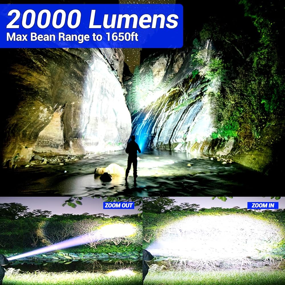 🔦سوبر مشرق وقابل للتكبير - يضمن سطوع يصل إلى 20000 لومن ورؤية 1650 قدمًا حصولك على مصدر ضوء موثوق ومشرق كلما احتجت إليه. مصابيحنا الكاشفة LED القابلة للتكبير/التصغير ذات اللومن العالي قادرة على تغيير التركيز، من شعاع واسع إلى شعاع ضيق.