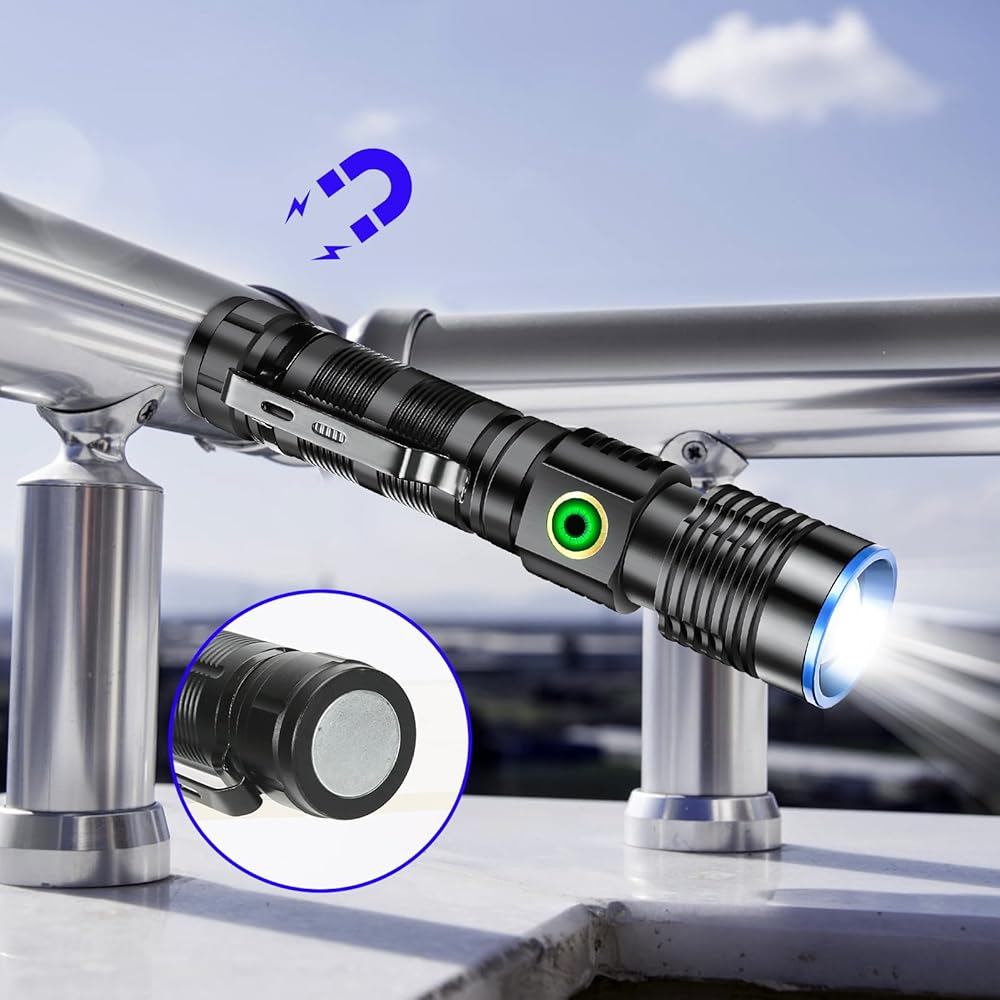 🔦مصباح جيب مزود بمشبك ومغناطيس - هذه المصابيح الكاشفة التكتيكية عالية اللومن قابلة لإعادة الشحن بقياس 5.82 × 1.34 بوصة، وتزن 7.4 أونصة، ولها حجم جيب مع مشبك، وخفيفة بما يكفي لتعليقها على جيب الملابس. يحتوي على مغناطيس قوي في الأسفل لتثبيته على أي سطح معدني. تناسب حقيبة الظهر أو مجموعة الطوارئ أو مجموعة النجاة أو حجرة القفازات، وهي مثالية للمغامرات الخارجية.