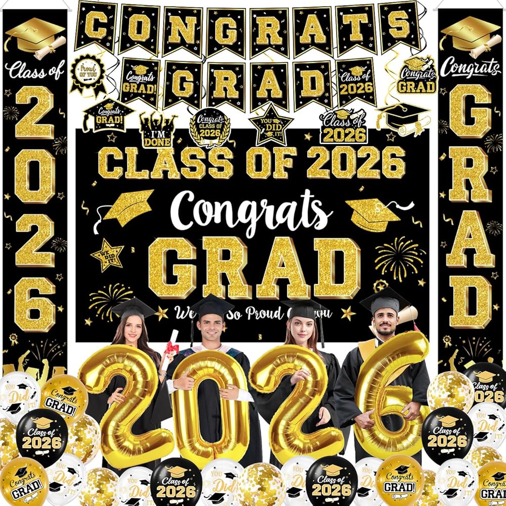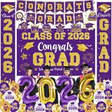 تصميم رائع للتخرج: باستخدام تقنية أنماط الطباعة المتقدمة، تتميز ديكورات حفلات التخرج هذه بتصميمات شهادات التخرج، وعناوين "Congrats Grad"، و"فئة 2024"، وقبعات البكالوريوس، وعناصر التخرج الأخرى في لوازم حفلات التخرج الخاصة بنا. قم بإنشاء جو مهيب لا يُنسى حقًا ليوم التخرج الخاص بك والذي من المؤكد أنه سيثير إعجاب ضيوفك.