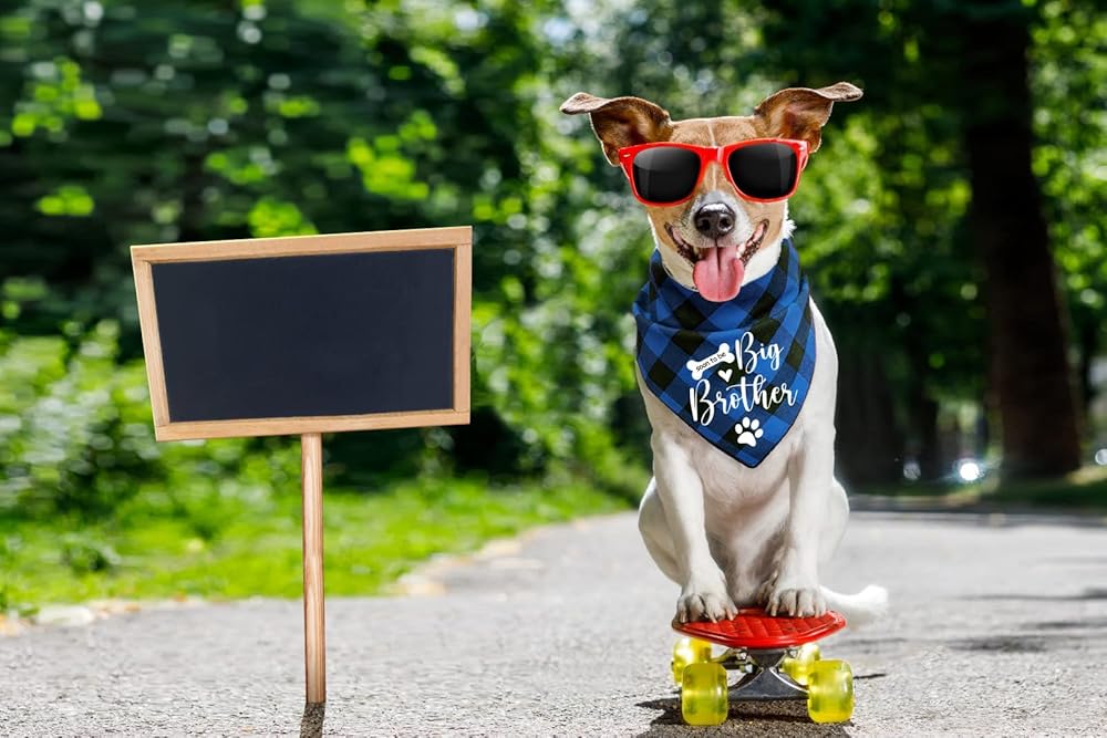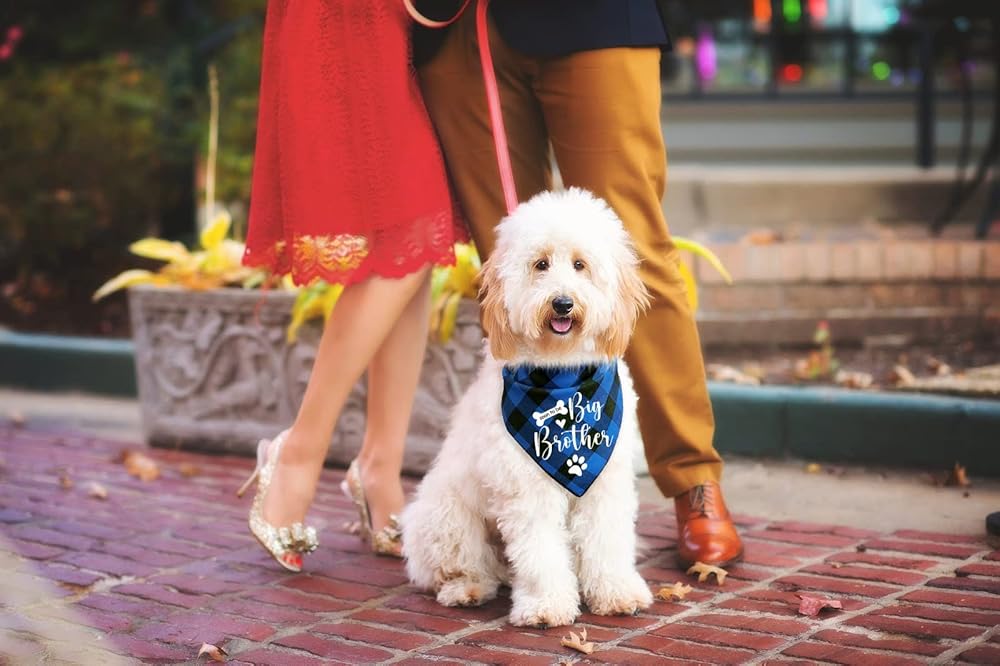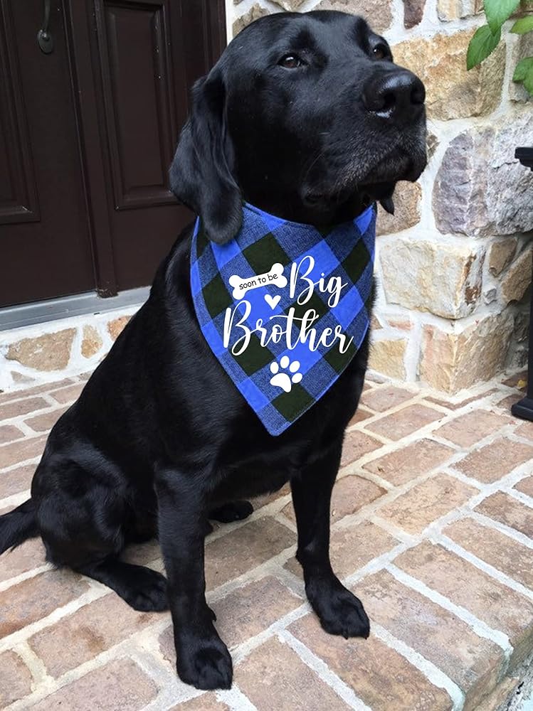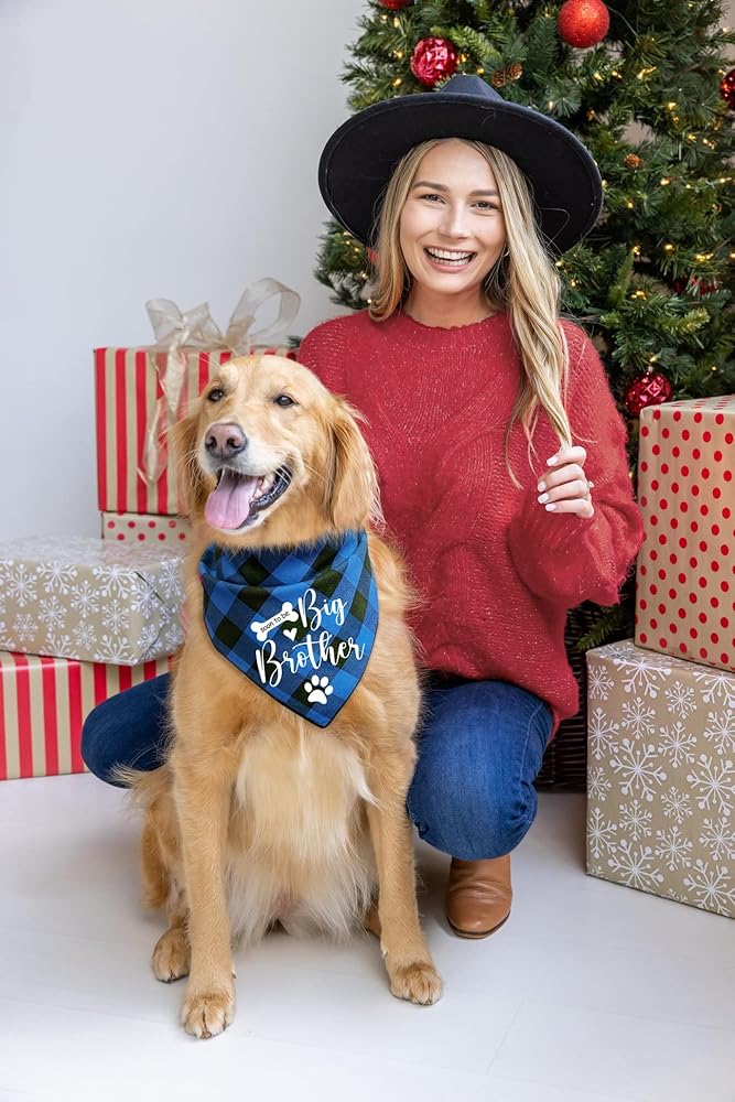 Funny Blue Plaid Cotton Triangle Pet Dog Bandana Dog Pet Scarf Bibs for Small Medium Large Boy Pet Dog Cat Birthday Wedding Party Clothing Scarf Accessories Decorations, Dog Headscarf Gender Revealing Announcement Photo Prop for Dog Lovers Gift