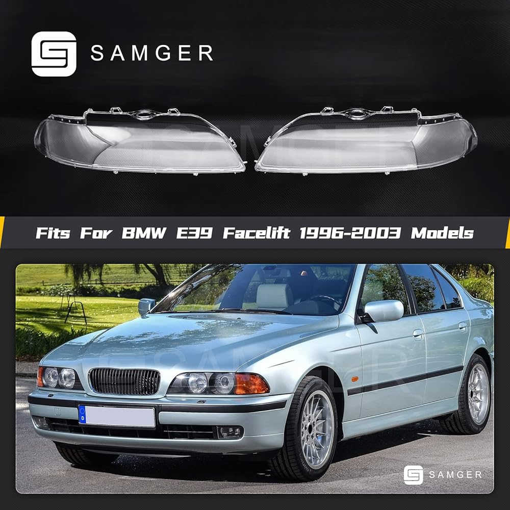 Samger 2 قطعة الجانب الأيسر الأيمن العلوي كشافات عدسة واضحة غطاء للعدسات استبدال لسيارات BMW E39 تجميل 525i 528i 4 باب 1996-2003