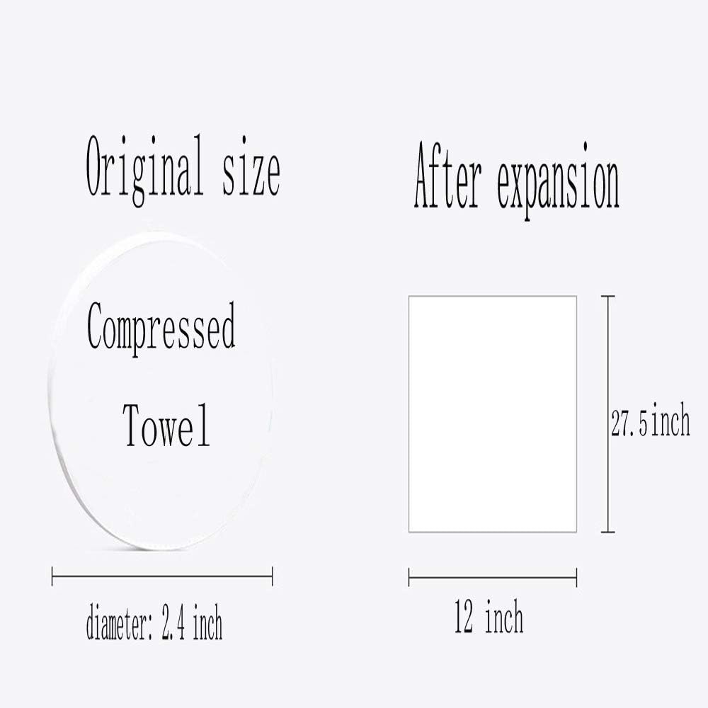 - الحجم الأصلي: القطر 2.4 بوصة. ضعه في الماء لعدة ثوانٍ. ستكون قابلة للتمدد وتصبح منشفة كبيرة، الحجم الإضافي: حوالي 12 × 25.6 انش
