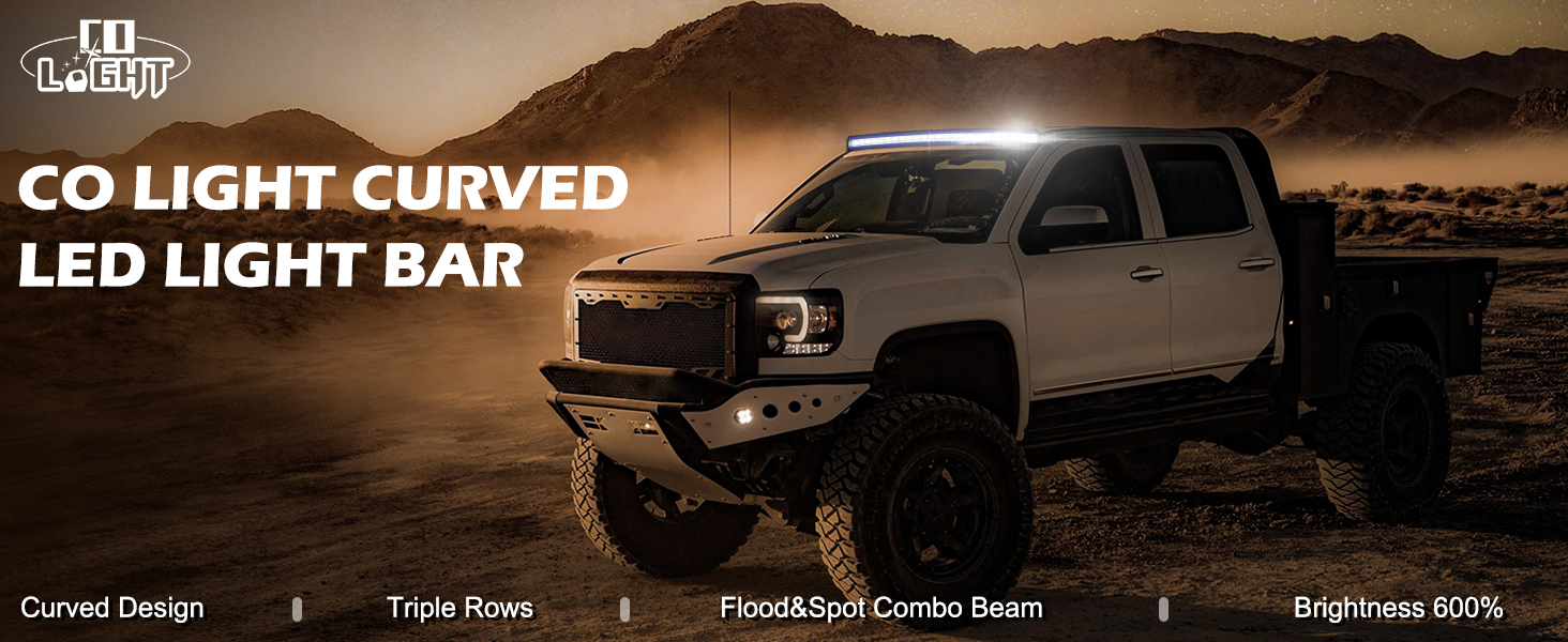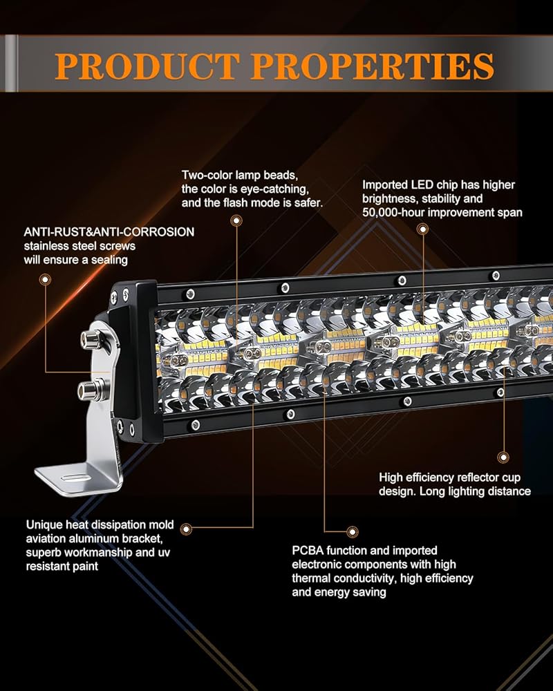 CO LIGHT 50 بوصة شريط إضاءة LED ثنائي اللون كهرماني/أبيض ستروب - بقعة على الطرق الوعرة وضوء الفيضانات مع حامل قابل للتعديل - مقاوم للماء للشاحنات SUV 4x4 F150