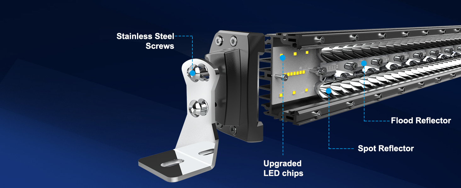 【مشرق للغاية】 الطاقة: 600 وات؛ التجويف: 35,000 لومن. يمكن لرقائق LED عالية الطاقة أن تنتج ضوءًا أبيض نقيًا فائق السطوع 6000K. يؤدي الكوب الخفيف المصنوع من البولي كربونات غير القابل للكسر والمضاد للاحتكاك إلى نفاذية شريط الضوء بنسبة تزيد عن 98%. يعد شريط الإضاءة LED مقاس 52 بوصة خيارًا رائعًا لإضاءتك المساعدة.