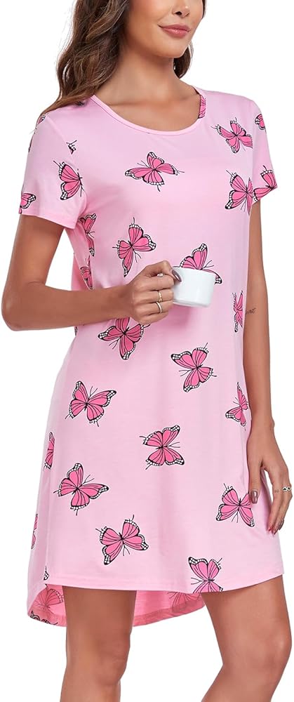 ☀ مظهر جميل: مع طباعة جميلة، هذا ثوب النوم قصير الأكمام يبقيك تبدين أكثر سحرًا. مثالي للنوم والاسترخاء أو المشي بحرية. لن يكون ثوب النوم القصير غير الرسمي محرجًا حتى عند زيارة الضيوف