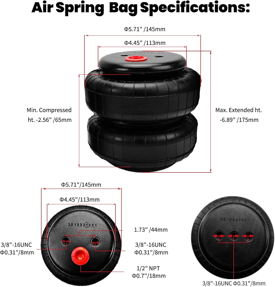 أداء ممتاز - ما يصل إلى 5000 رطل من القدرة على تسوية الحمولة. نوابض هوائية قابلة للتعديل بالكامل لضبط مستوى سيارتك عند سحب أو نقل حمولة ثقيلة من أجل قيادة آمنة ومريحة.
