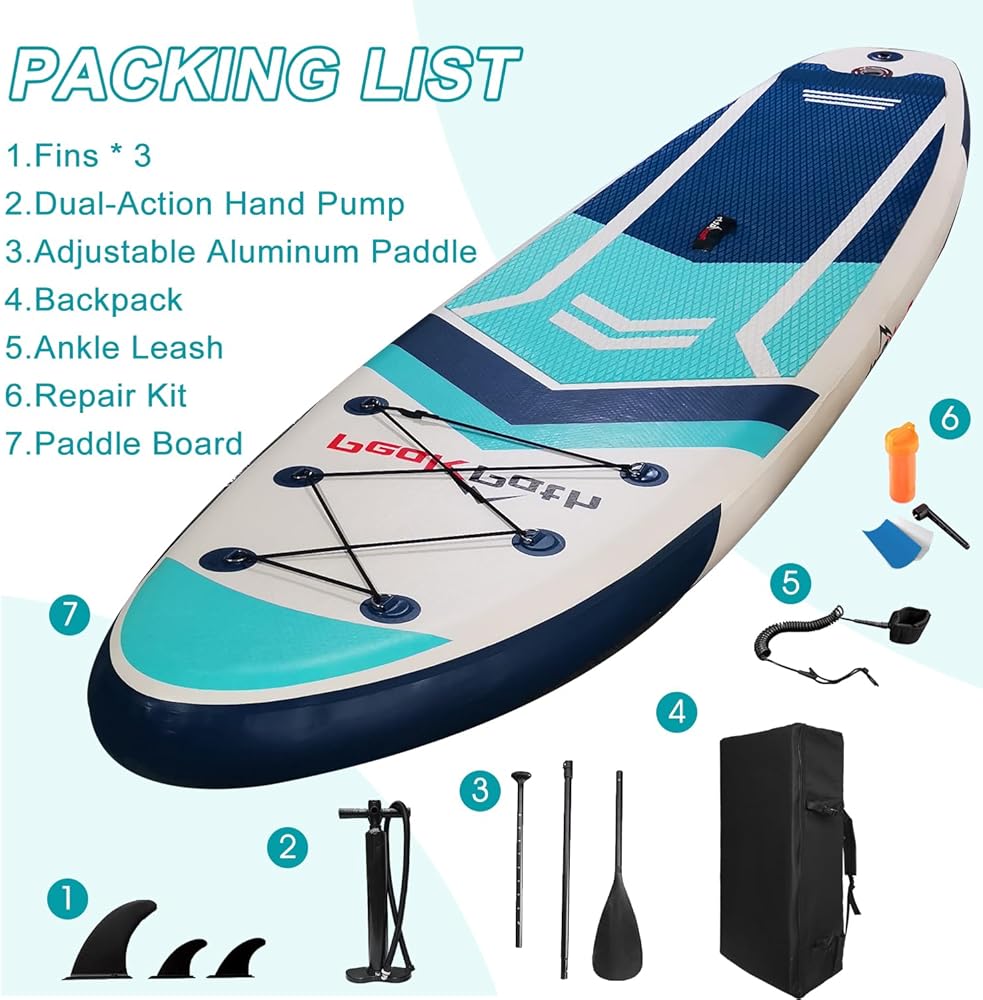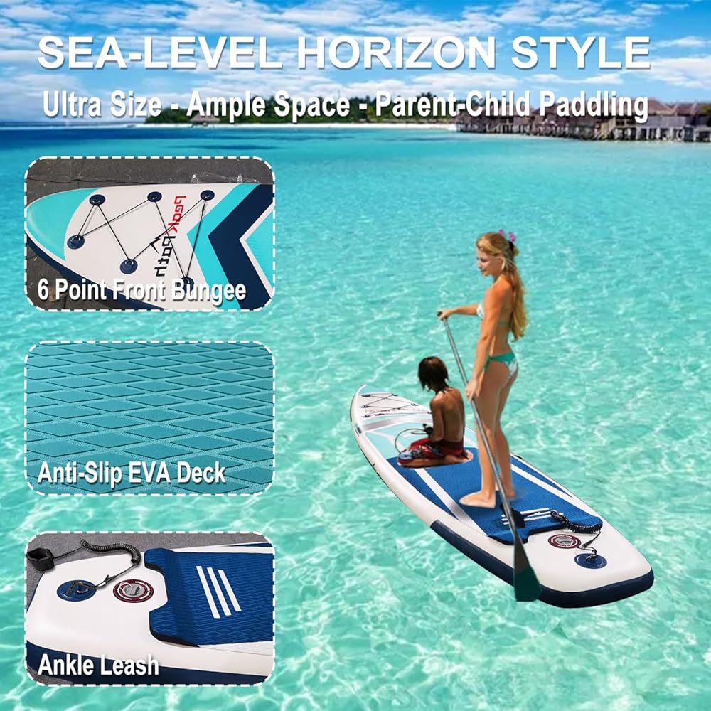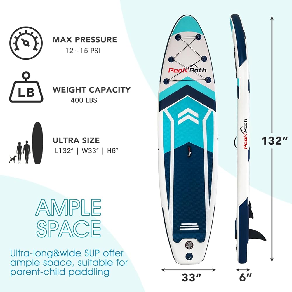 [Suitable for Family Water Entertainment and Leisure] SUP board can be used in different water including lakes, rivers or small wavy ocean. And the inflatable sup boards is great for flat water paddling for outdoor recreation, fitness, or sightseeing, Paddle board yoga and even fishing.