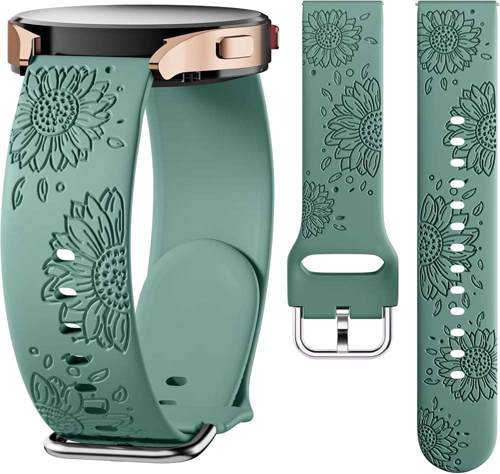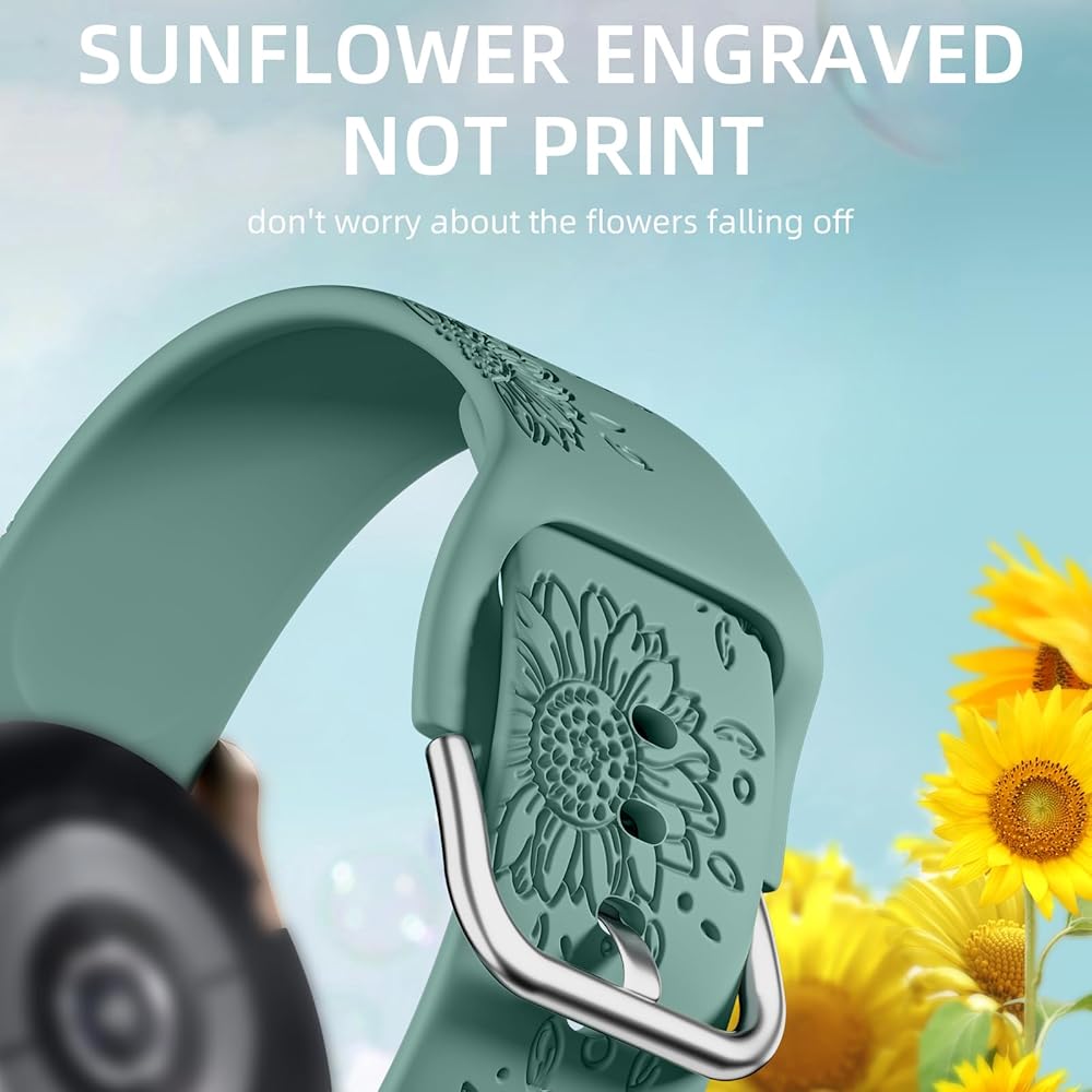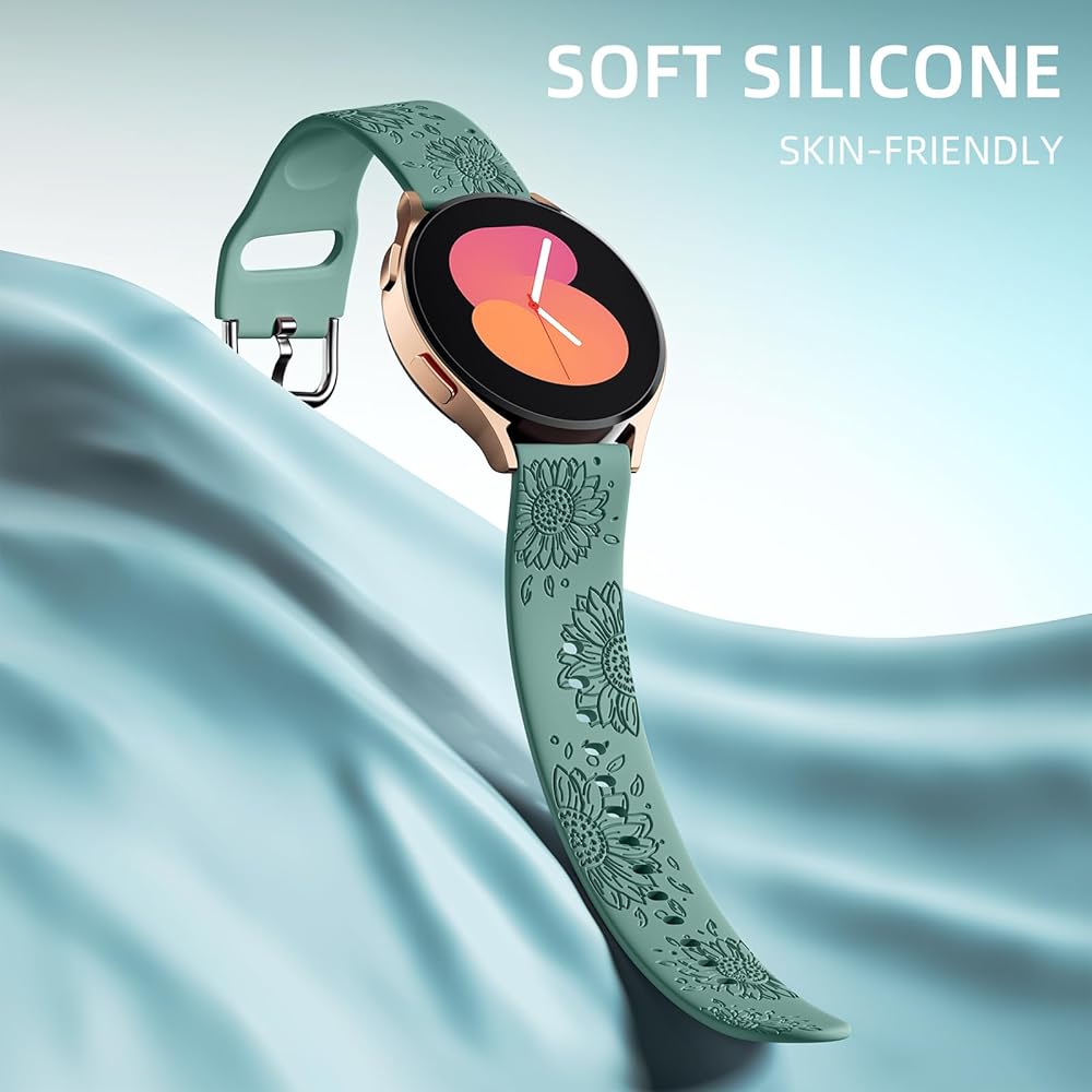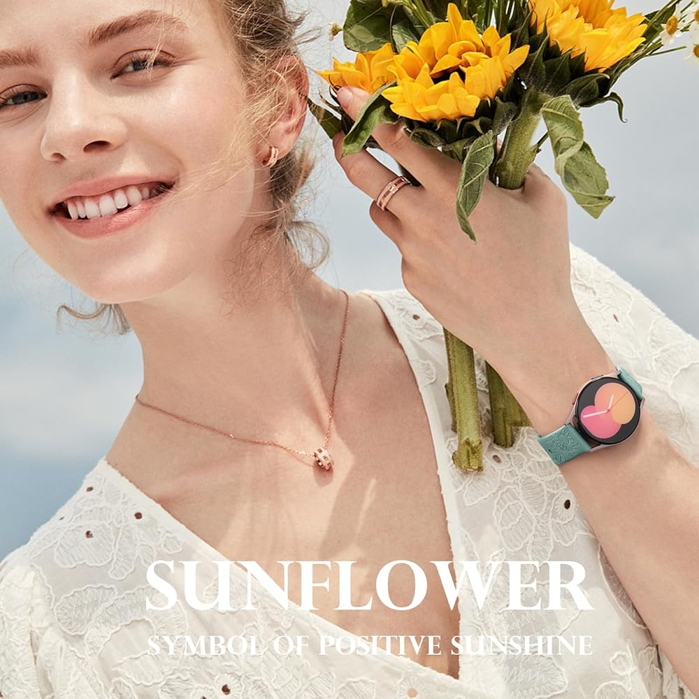أساور GEAK محفورة على شكل عباد الشمس متوافقة مع ساعة Samsung Galaxy Watch 6/Galaxy Watch 5/Galaxy Watch 4/Galaxy Watch 5 Pro، أساور معصم رياضية من السيليكون الناعم مقاس 20 مم لساعة Galaxy Watch Band النساء والرجال