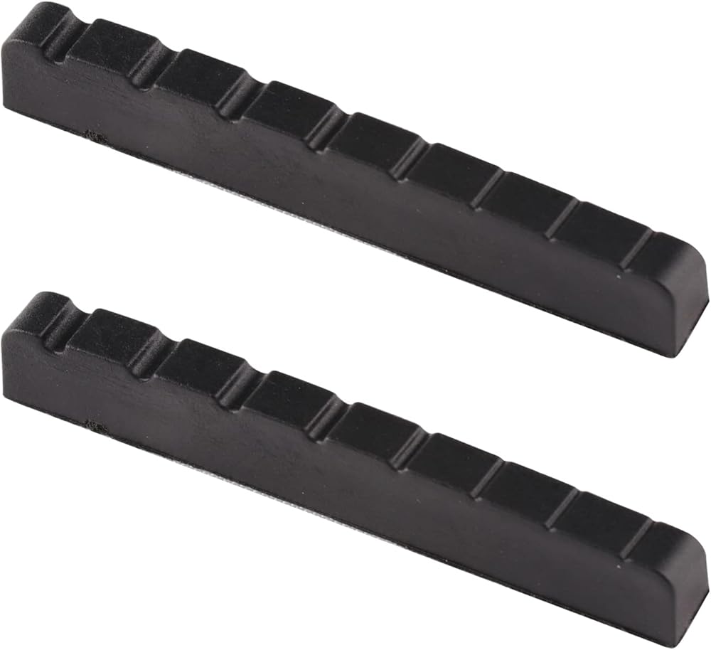 • Nut has pre-cut string slots and easy to install, Package include: 2 x Graphite nut, Please note: Nut may require sanding and shaping for a perfect fit and improved action.