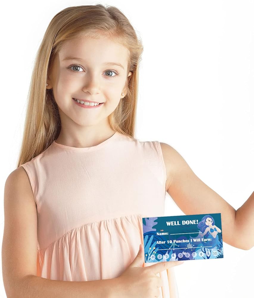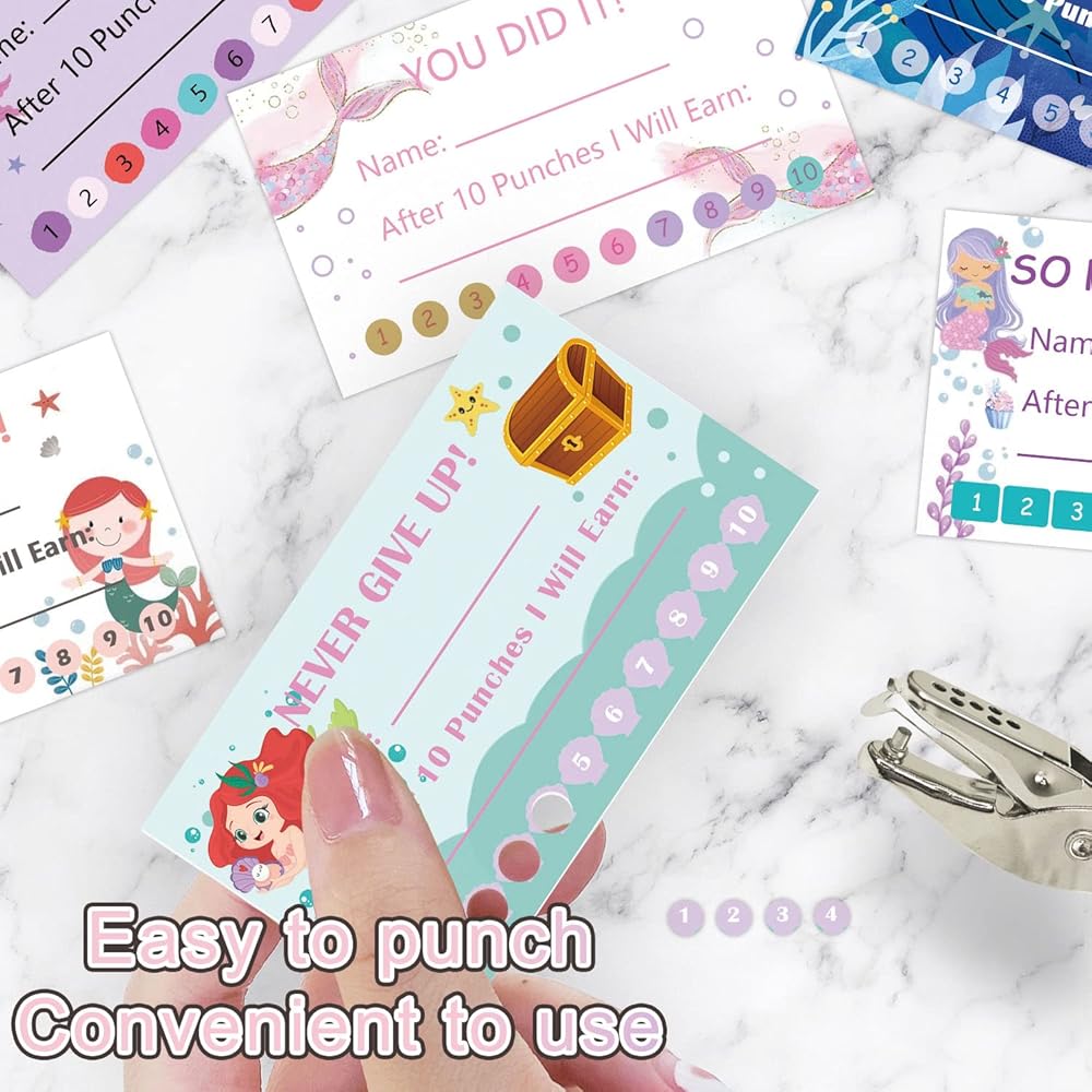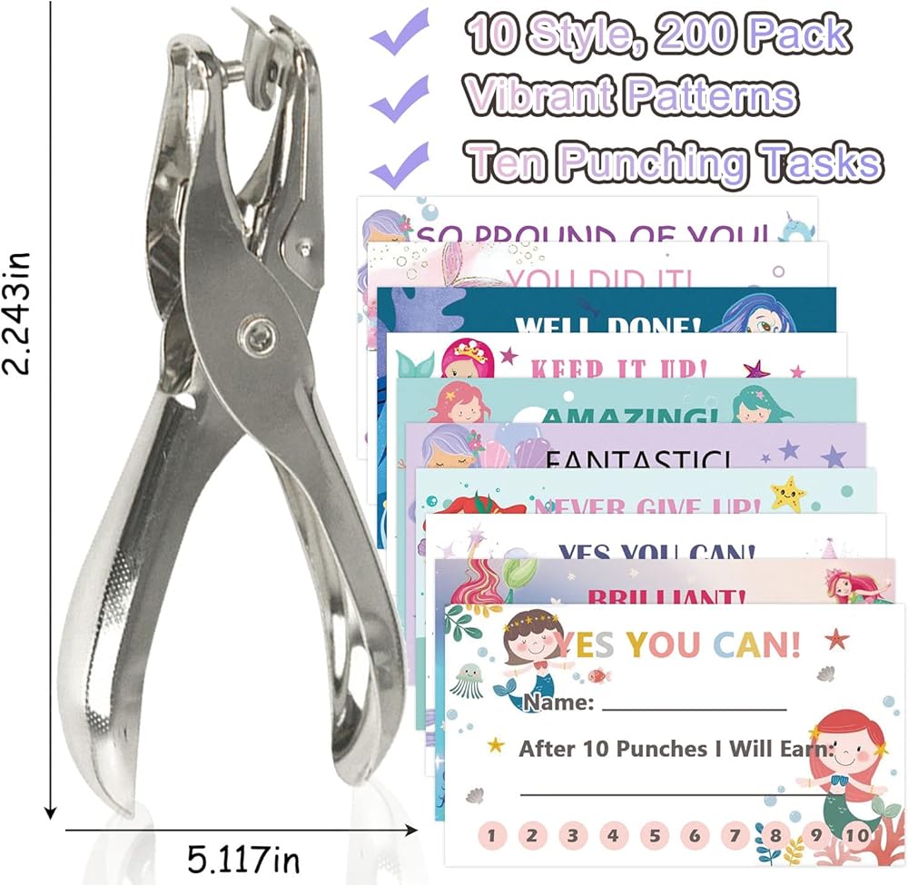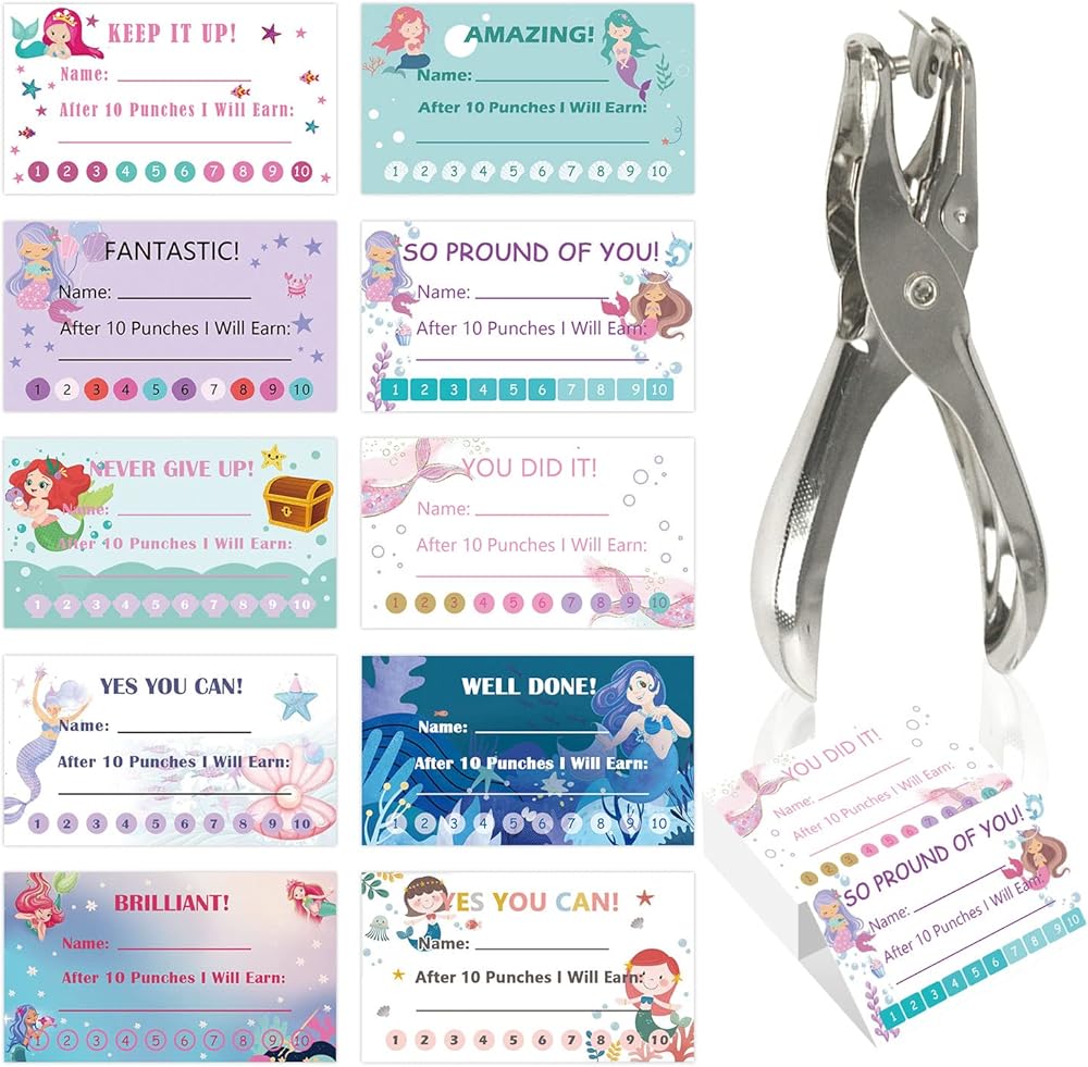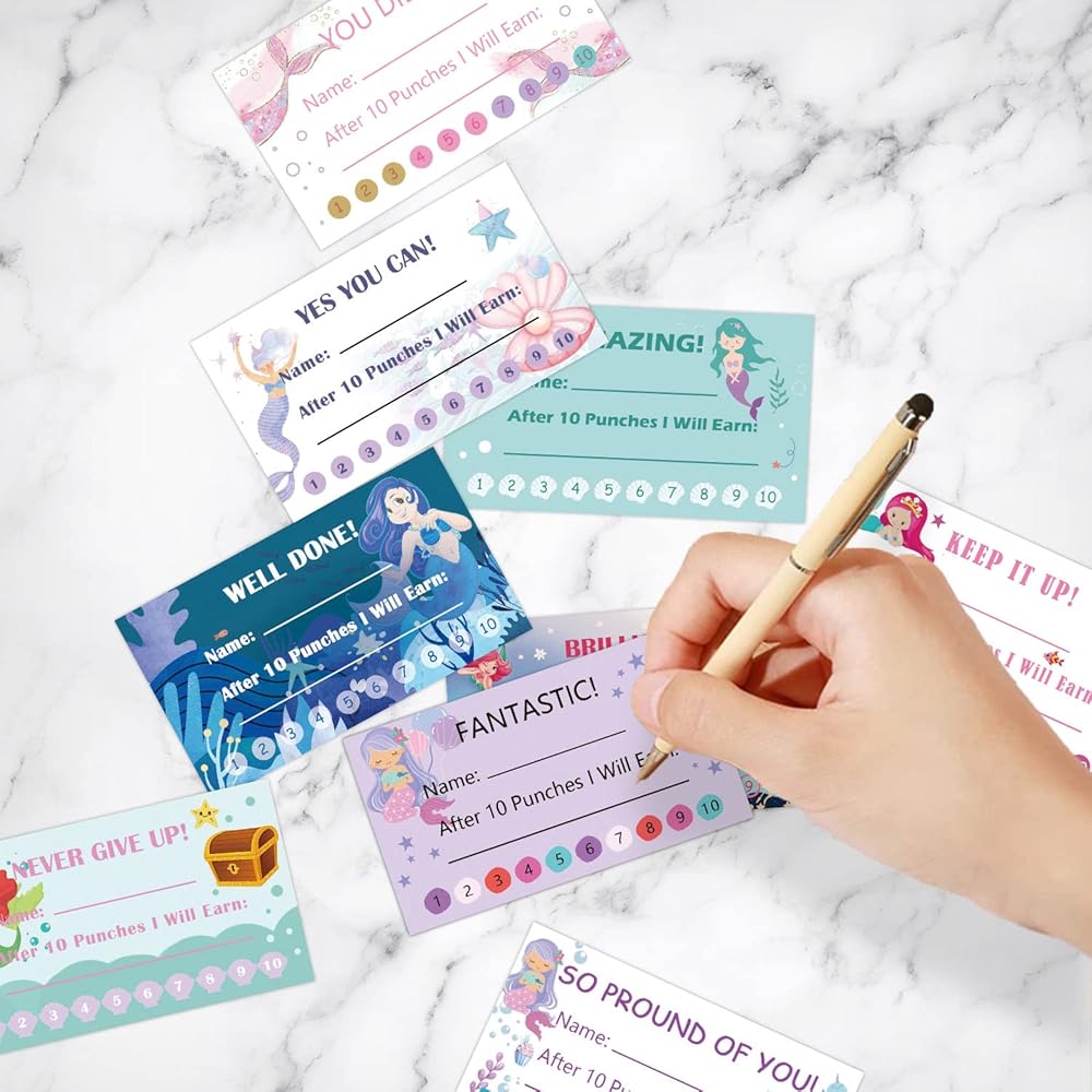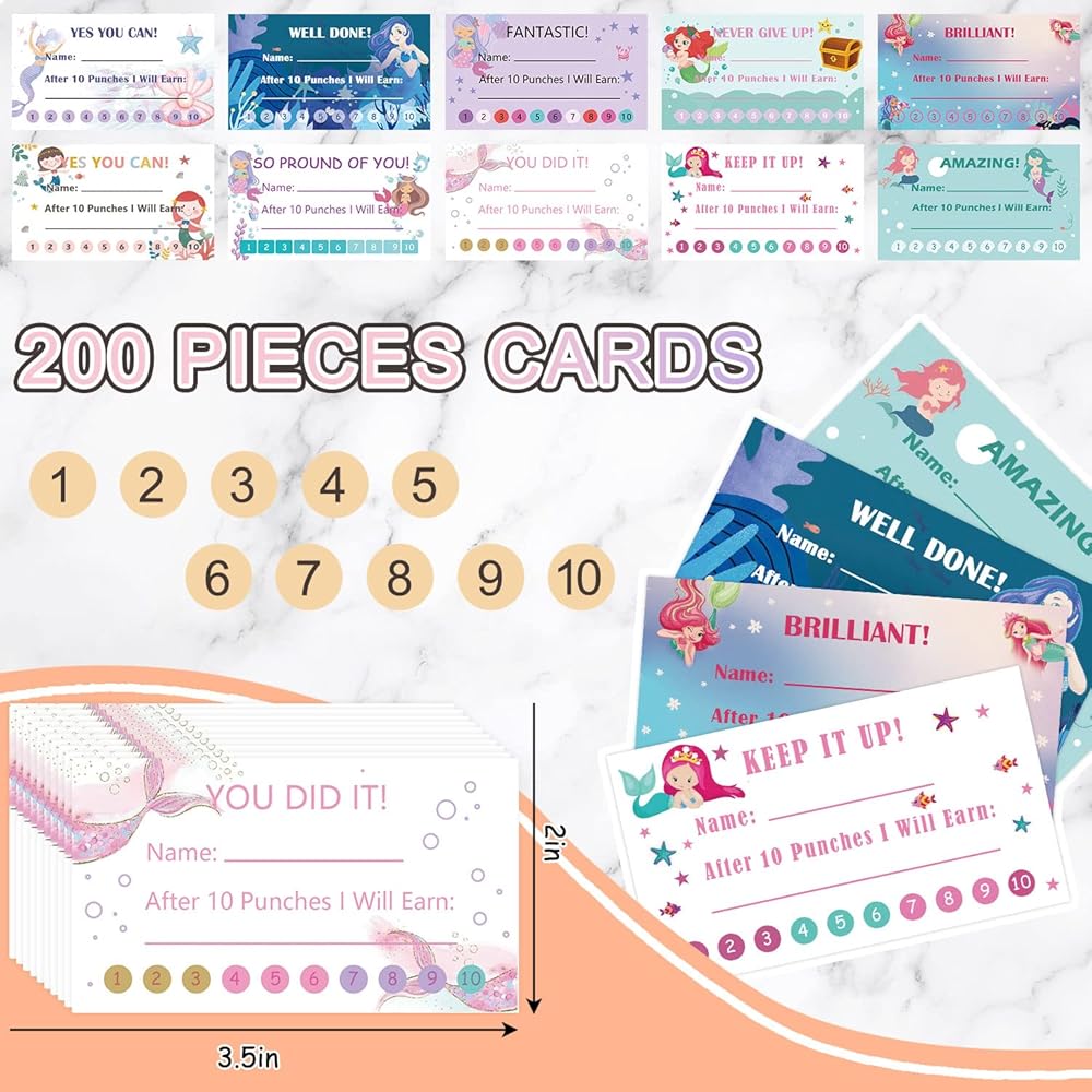 بطاقات لكمة على شكل حورية البحر مع ثقب، 200 قطعة من جوائز حوافز سلوك الأطفال للفتيات والأطفال والمدرسين، رائعة للاستخدام في المنزل والفصول الدراسية وبطاقة ولاء الأعمال