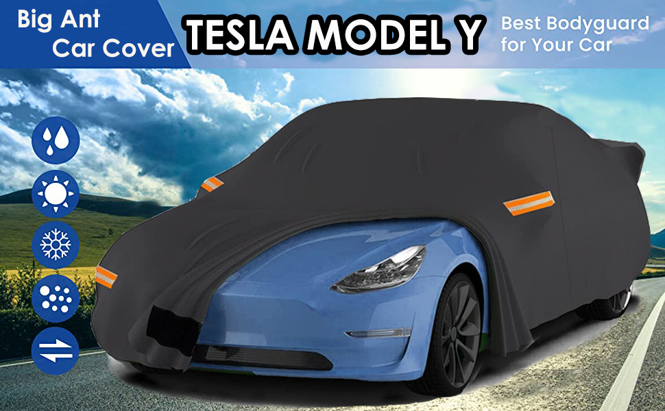 حماية من جميع الأحوال الجوية - يضمن غطاء السيارة Big Ant أن تكنولوجيا الدرزات المعززة ومقاومة للماء بنسبة 100% تحافظ على نظافة سيارتك في يوم ممطر خفيف بفضل نسيجها الرائع. يمكن لأغطية السيارة عالية الجودة أن تحافظ على برودة المركبات ونظافتها بشكل فعال، كما أن مادة الطلاء العاكسة تحجب أشعة الشمس بشكل فعال مقاومة للأشعة فوق البنفسجية الداخلية القوية. يحمي غطاء السيارة الخارجي لسيارة Tesla Model Y مركباتك في جميع الأحوال الجوية من الأوساخ والغبار والثلج والصقيع والملوثات الصناعية وفضلات الطيور.