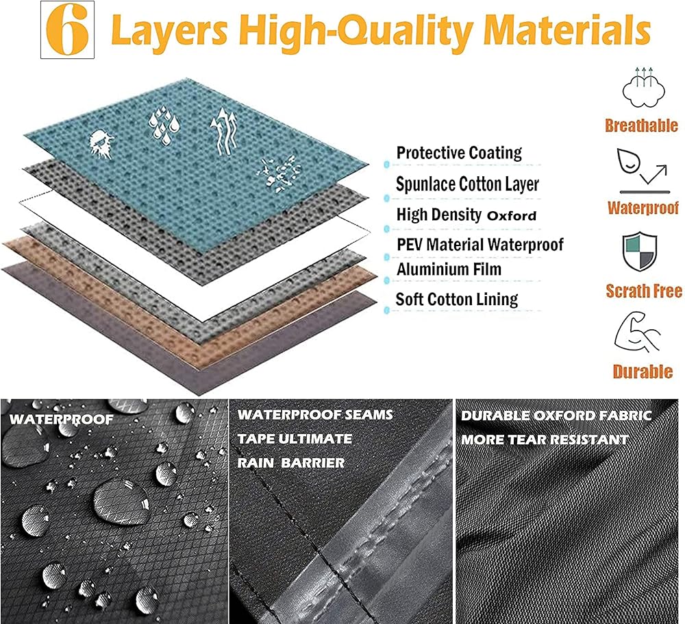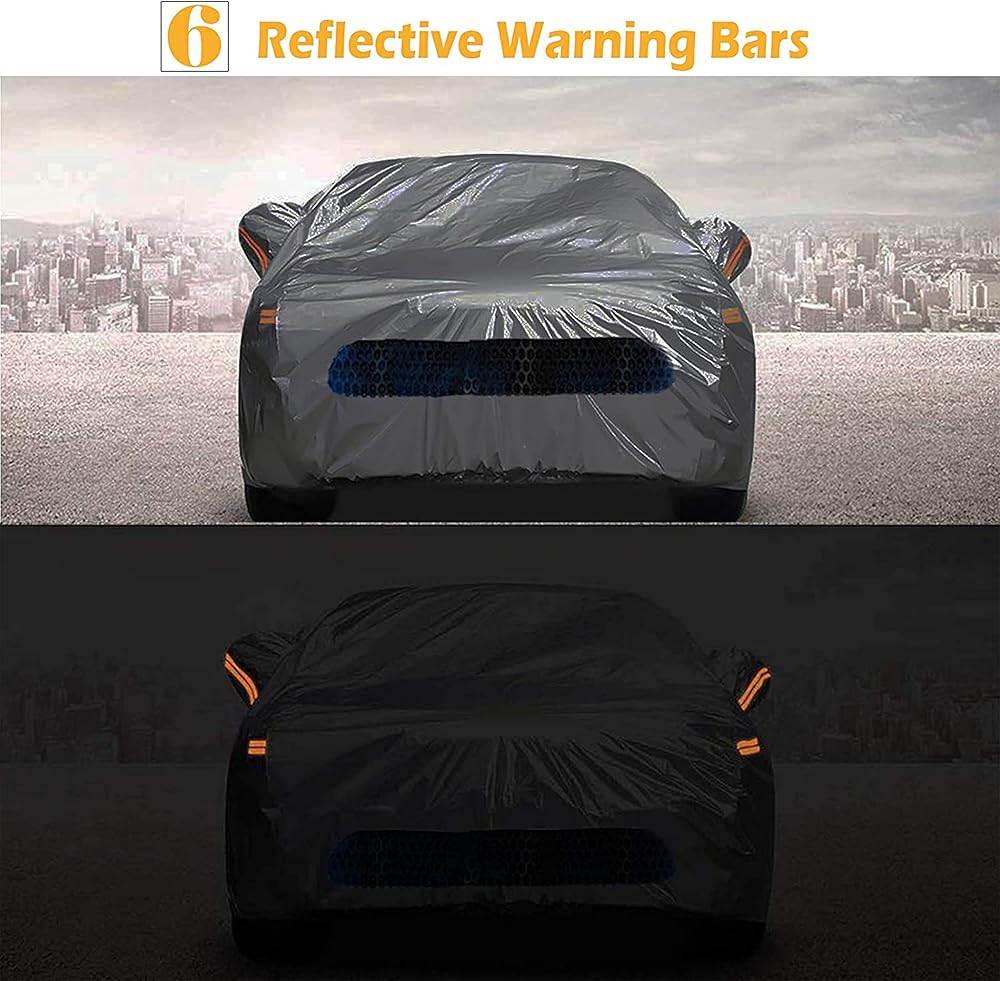 تصميم مقاوم للرياح وأشرطة عاكسة - غطاء السيارة الخارجي مرفق بحاشية مطاطية لسهولة ربطها ويمكن تثبيت 4 قطع من المطاط بالحبال على السيارة ضد الرياح القوية. حافظ على بقاء غطاء السيارة في مكانه بشكل مثالي للمساعدة في حماية السيارة. مع 6 أشرطة تحذير عاكسة مصممة باللون البرتقالي الفلوريسنت تنبعث ضوءًا مكثفًا في الليل لتجنب التأثير غير المتوقع في بيئة مظلمة.