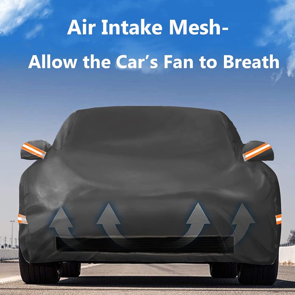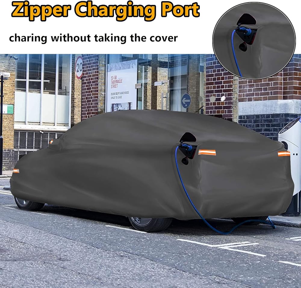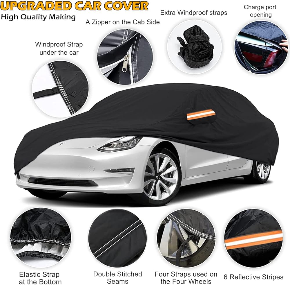 غطاء سيارة كبير النمل، غطاء سيارة سيدان مقاوم للماء بنسبة 100٪ مناسب لطراز Tesla Y، أغطية سيارة للحماية من جميع الأحوال الجوية مع شبكة تهوية وسحاب باب السائق لمنفذ الشحن، أسود