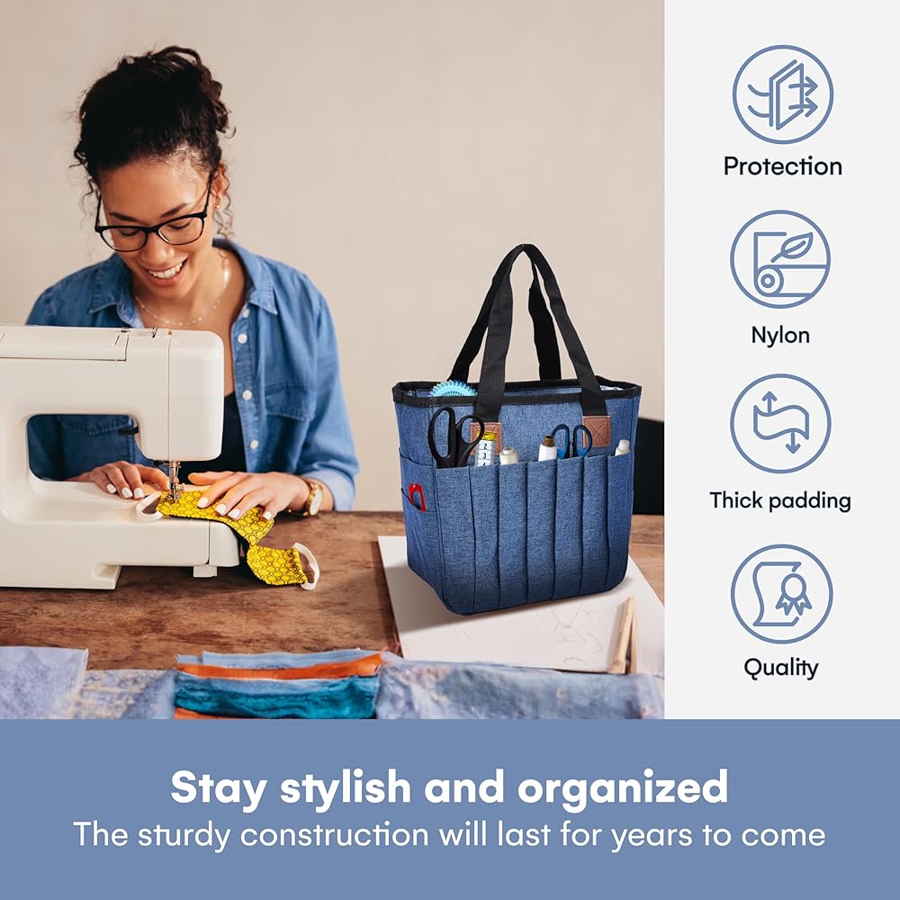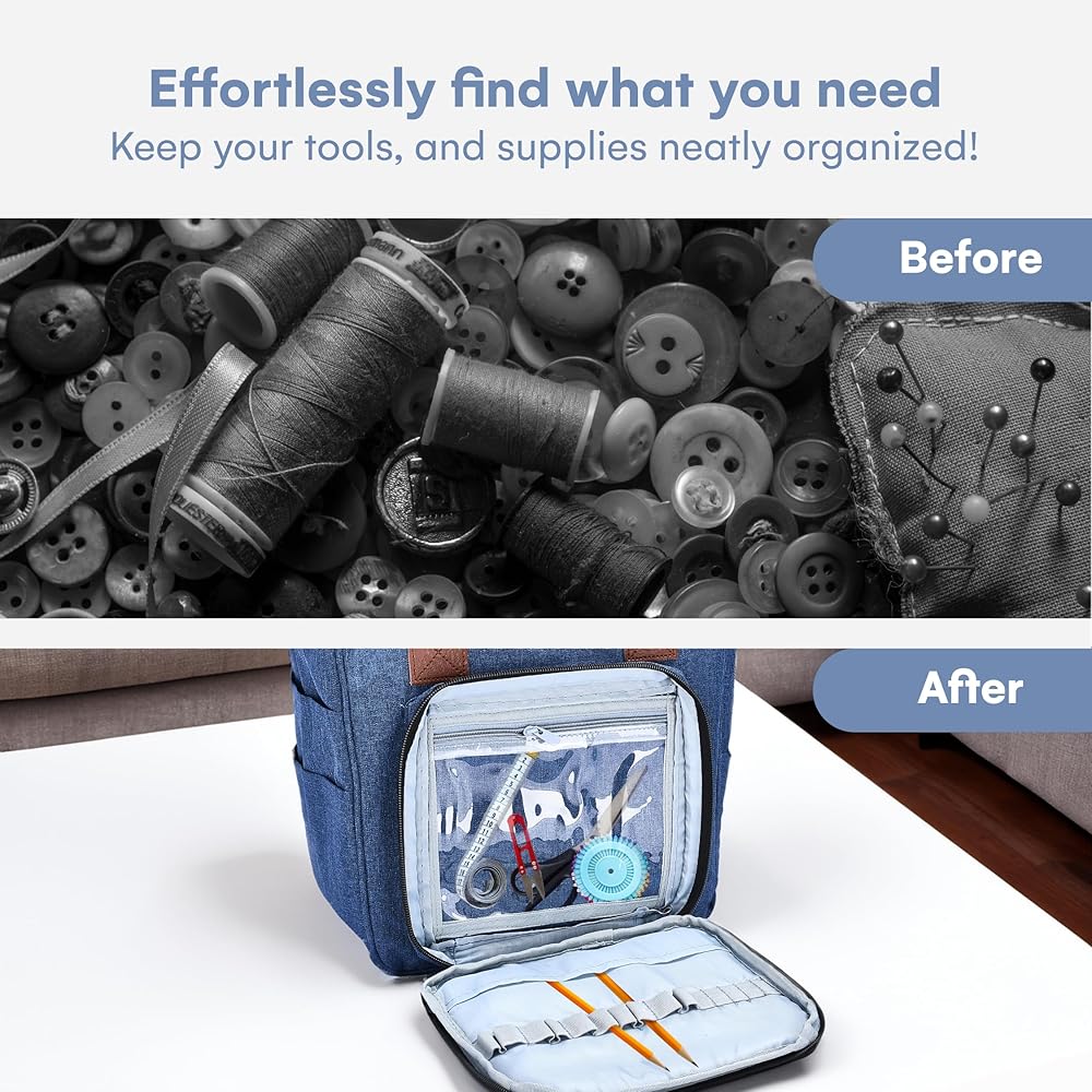متين ومحمي: تم تصنيع منظم حقائب الخياطة هذا من النايلون القوي مع بطانة ناعمة، مما يضمن جودة وحماية ممتازة لمستلزمات الخياطة الخاصة بك.