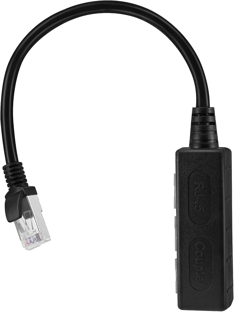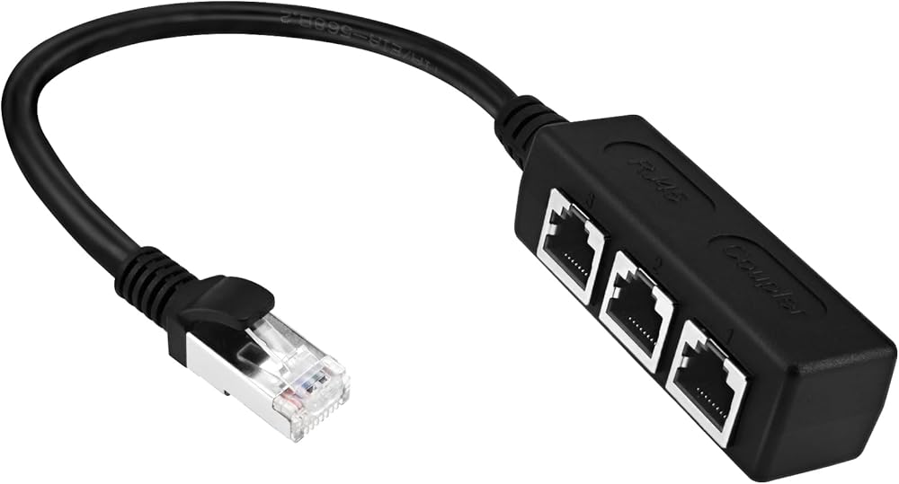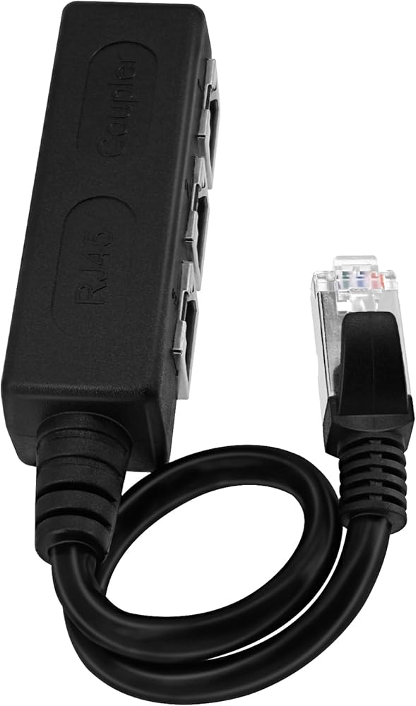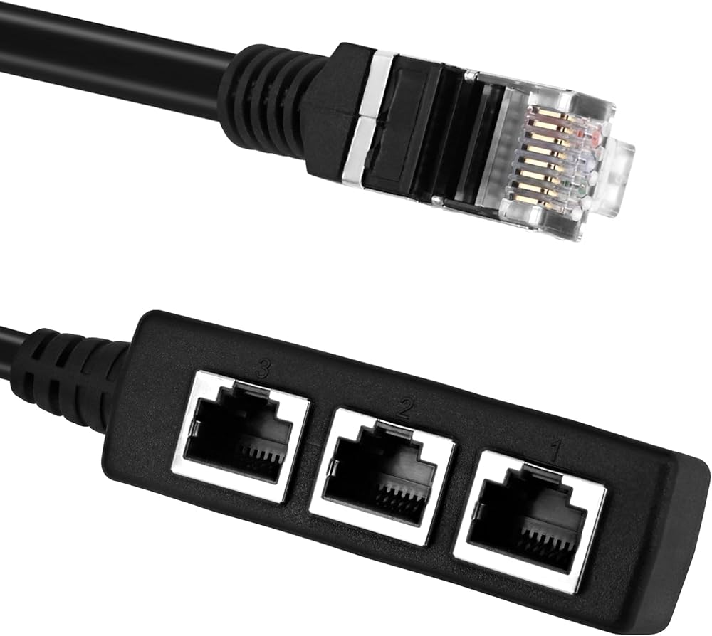 Use network splitter to easily convert an RJ45 connection to three RJ45 sockets. Allows three computers to share high-speed DSL, cable modems and Ethernet ports without the need for a router, extending an RJ45 socket to three standard 8P8C designs.
