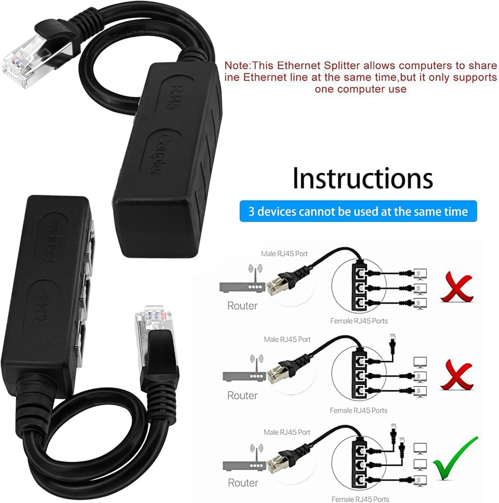 ❤You use this rj45 1 to 3 ways ethernet splitter to help you do not have to pull back and forth cable. Without the need for a router, extending an RJ45 socket to three standard 8P8C designs(When one device is using the network, the other devices need to be powered off or disconnected).