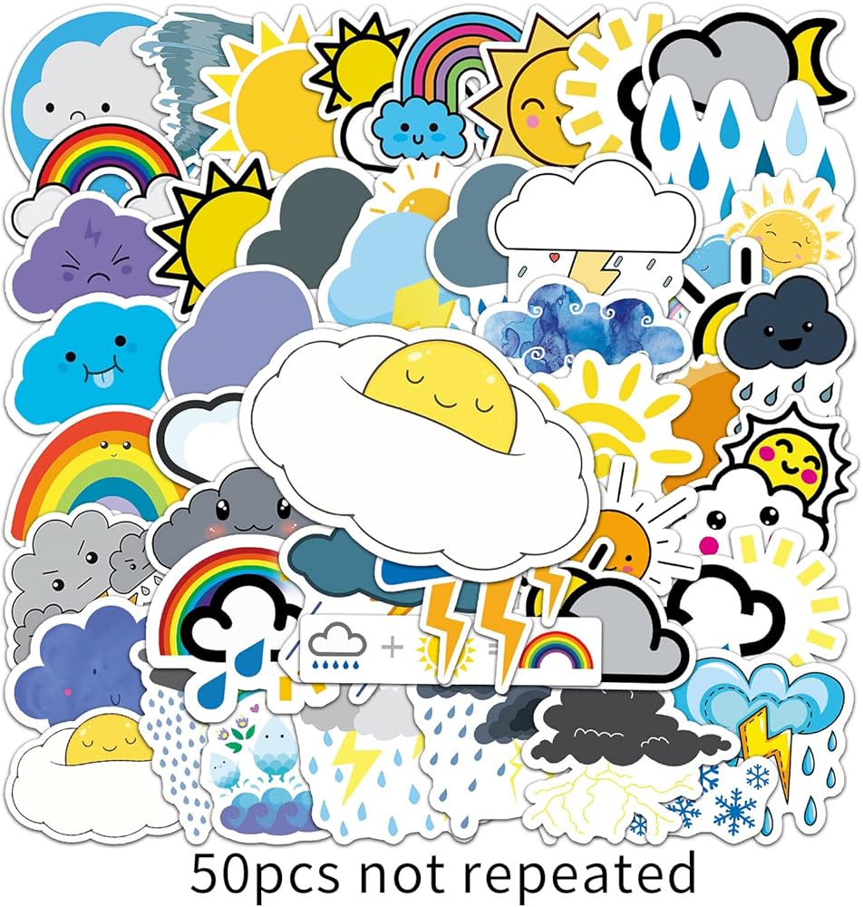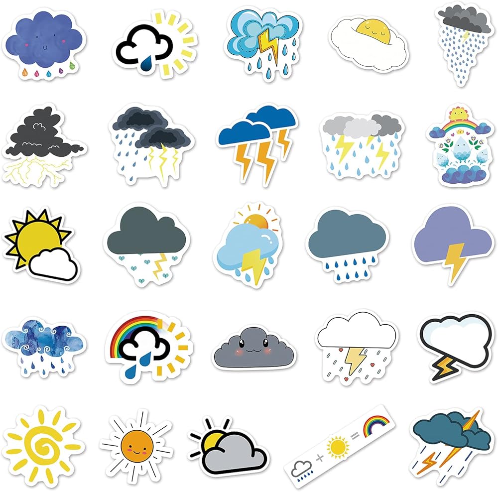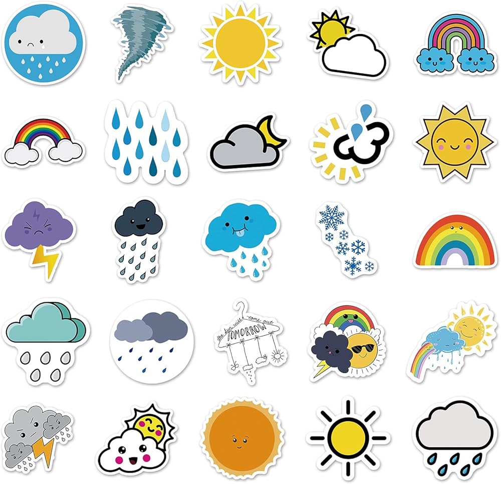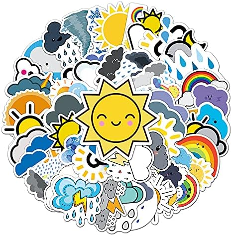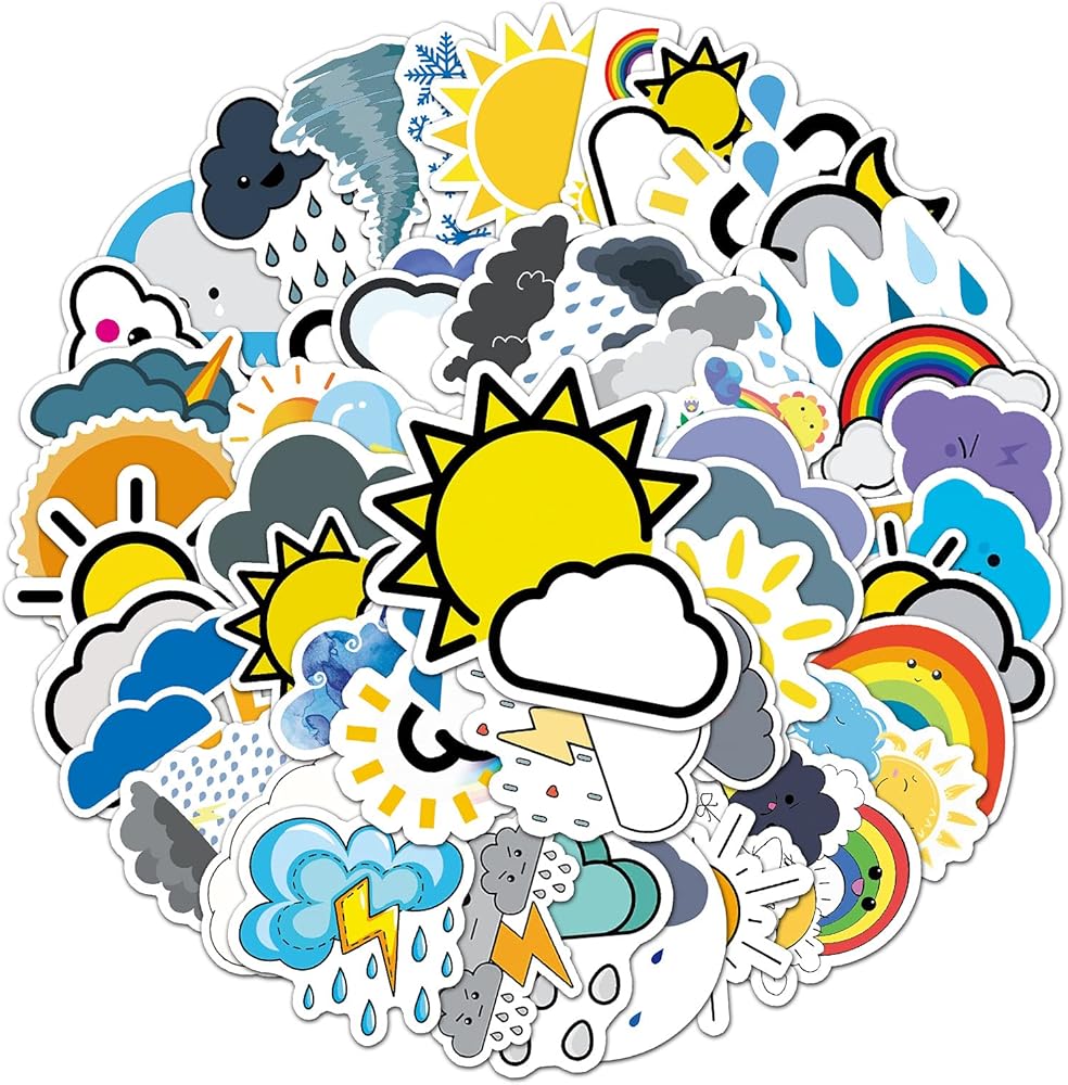 1.【High Quality】: The weather stickers set contains 50 stickers, each size is about 1.5 - 3.2 inches. All stickers are 100% brand new and made of high quality vinyl PVC to make your daily planning or journaling more fun and efficient.