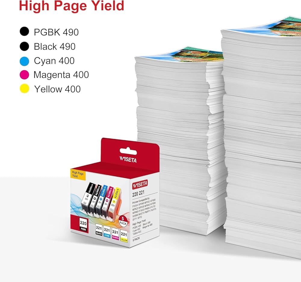 - استبدال خرطوشة الحبر PGI220 CLI221 المتوافقة مع WISETA لخراطيش الحبر Canon 220 221