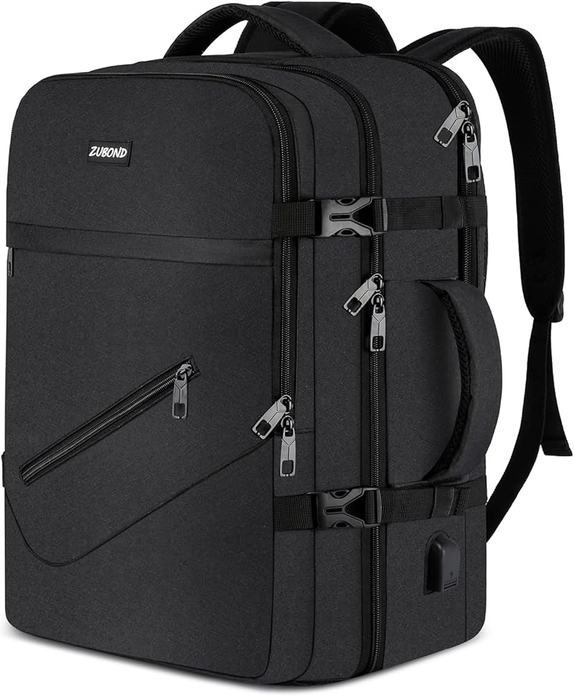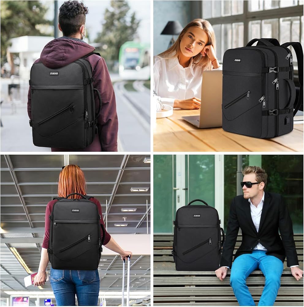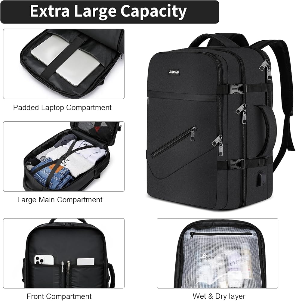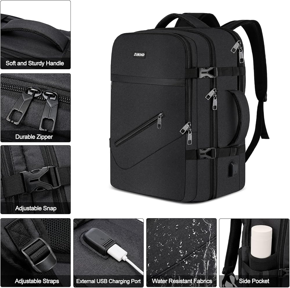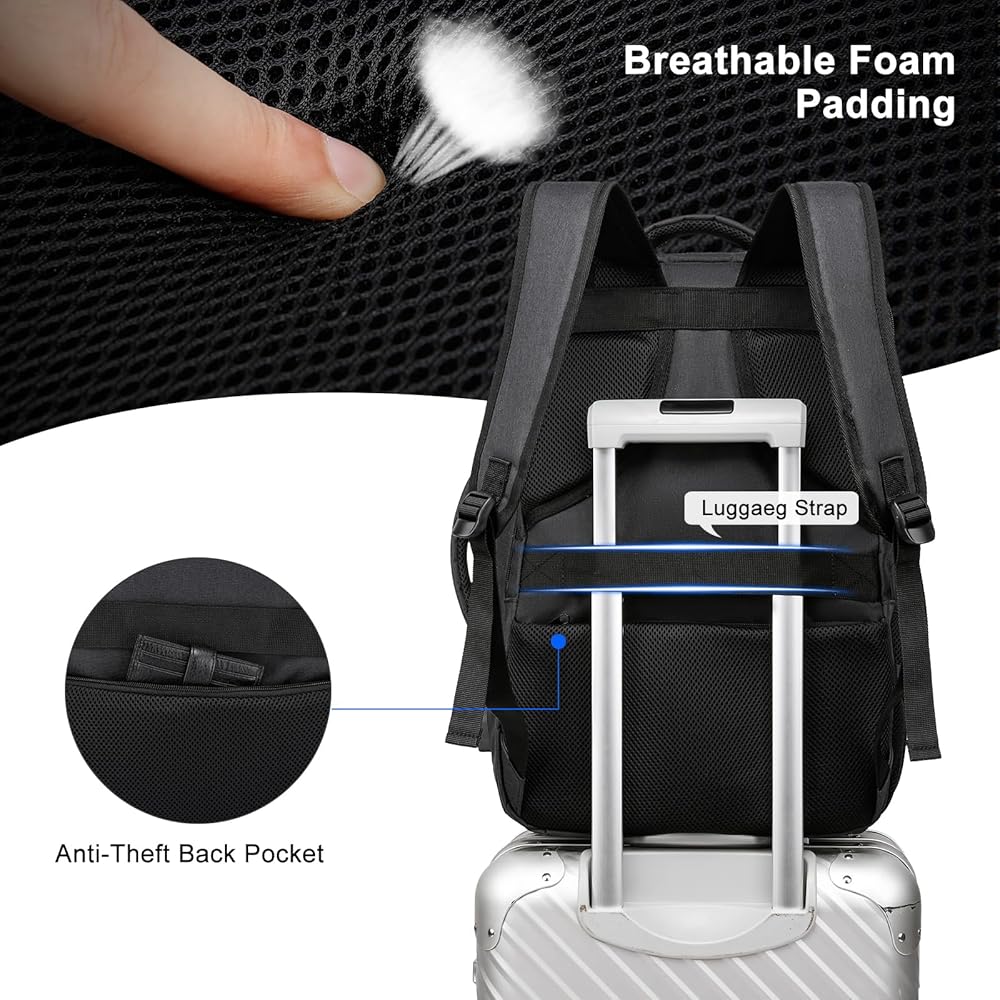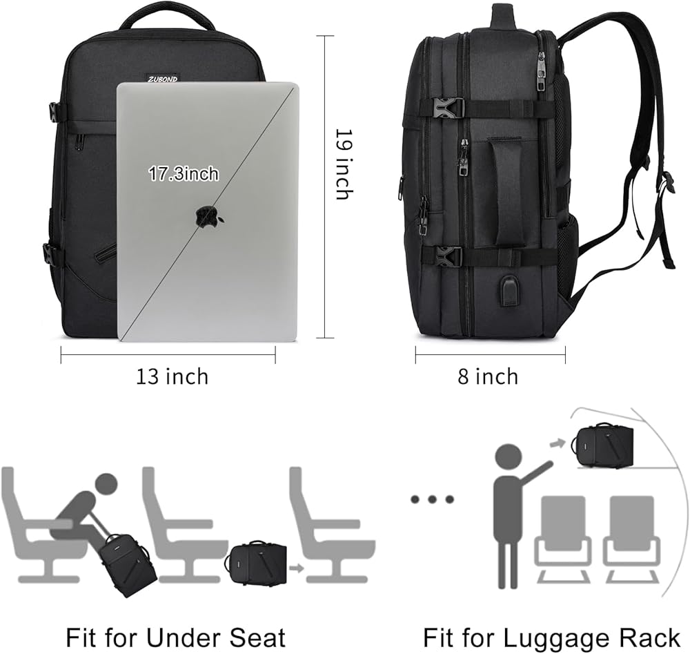 حقيبة ظهر للسفر للرجال والنساء، حقيبة ظهر كبيرة مضادة للماء، حقيبة أغراض شخصية معتمدة من شركة الطيران، حقيبة ظهر للكمبيوتر المحمول مقاس 17 بوصة، حقيبة عمل وصالة الألعاب الرياضية لعطلة نهاية الأسبوع، حقيبة ظهر مدرسية، أسود