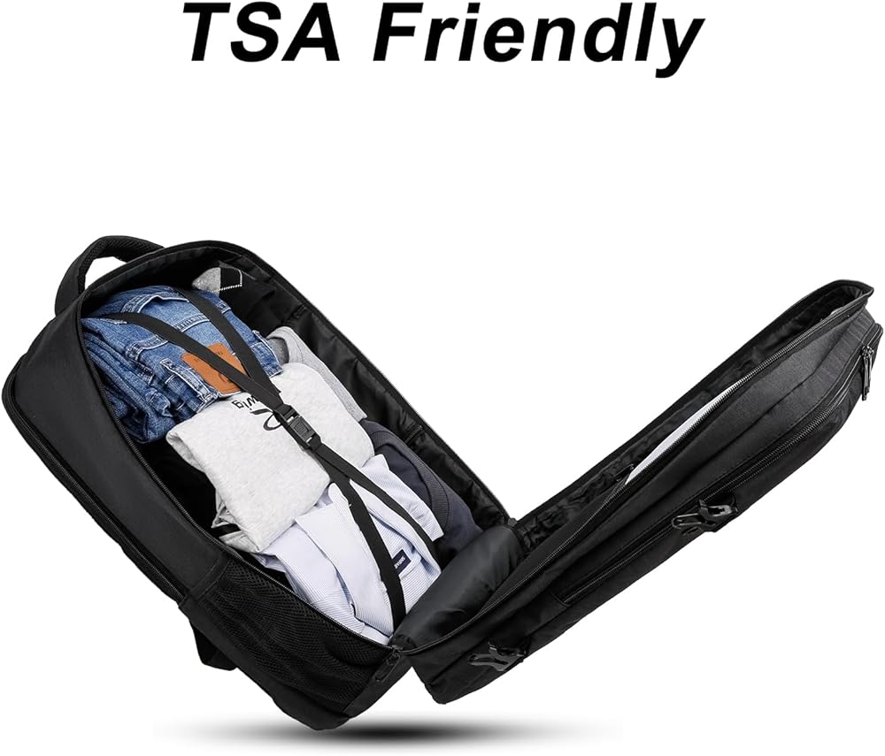 【حقيبة الأغراض الشخصية معتمدة من شركة الطيران】: تم تصميم وظيفة TSA-Friendly حصريًا للسفر بالطائرة. عند Checkpoint، يمكنك فتح حقيبة ظهر الكمبيوتر المحمول للسفر بحرية بمقدار 90-180 درجة ويظل الكمبيوتر المحمول مسطحًا دون إخراجه من الحقيبة، مما يجعله يمر عبر نقطة تفتيش أمن المطار بسهولة أكبر. حقيبة الظهر للسفر للكمبيوتر المحمول كبيرة بما يكفي للتنزه سيرًا على الأقدام والعطلات والسفر وعطلات نهاية الأسبوع والرحلات الليلية.