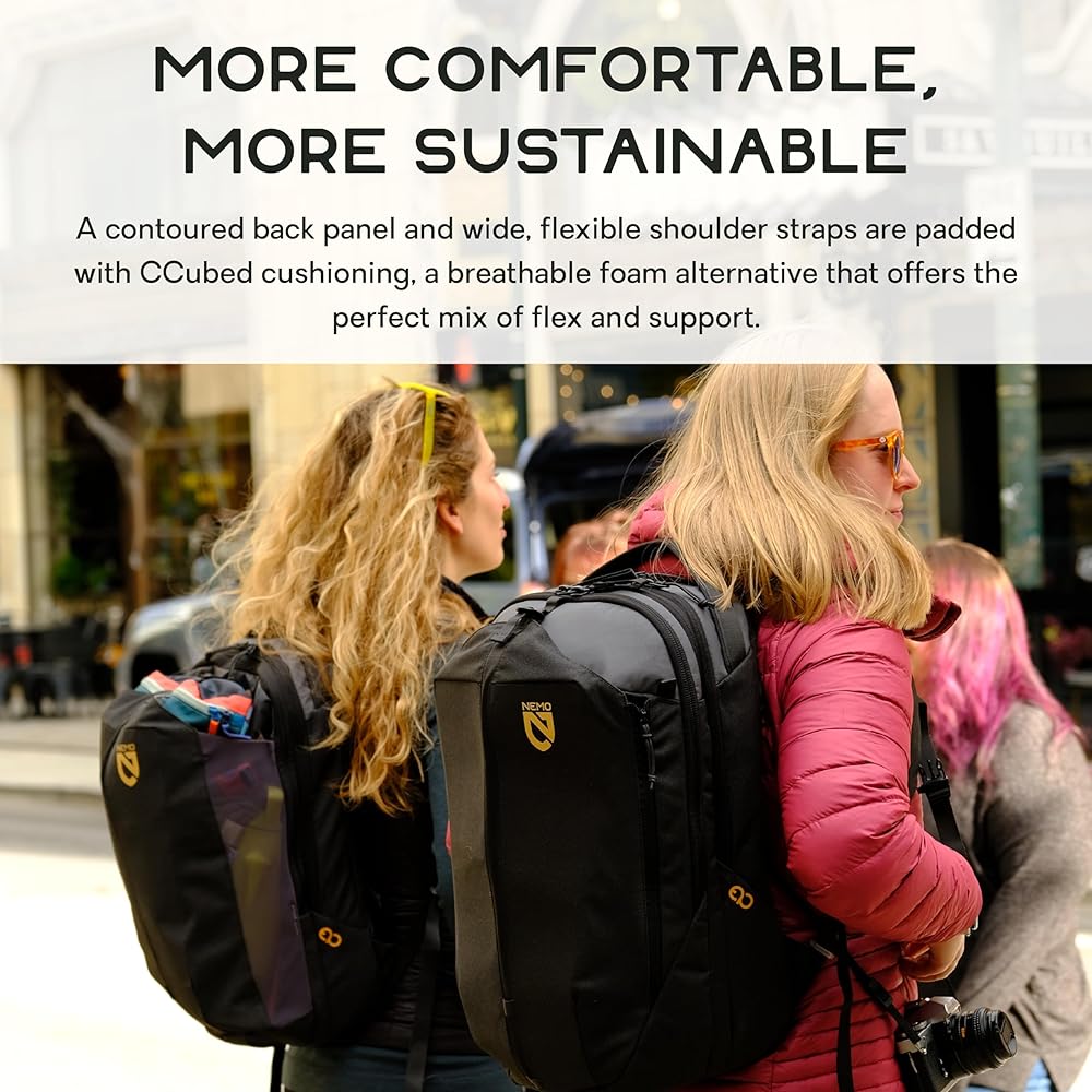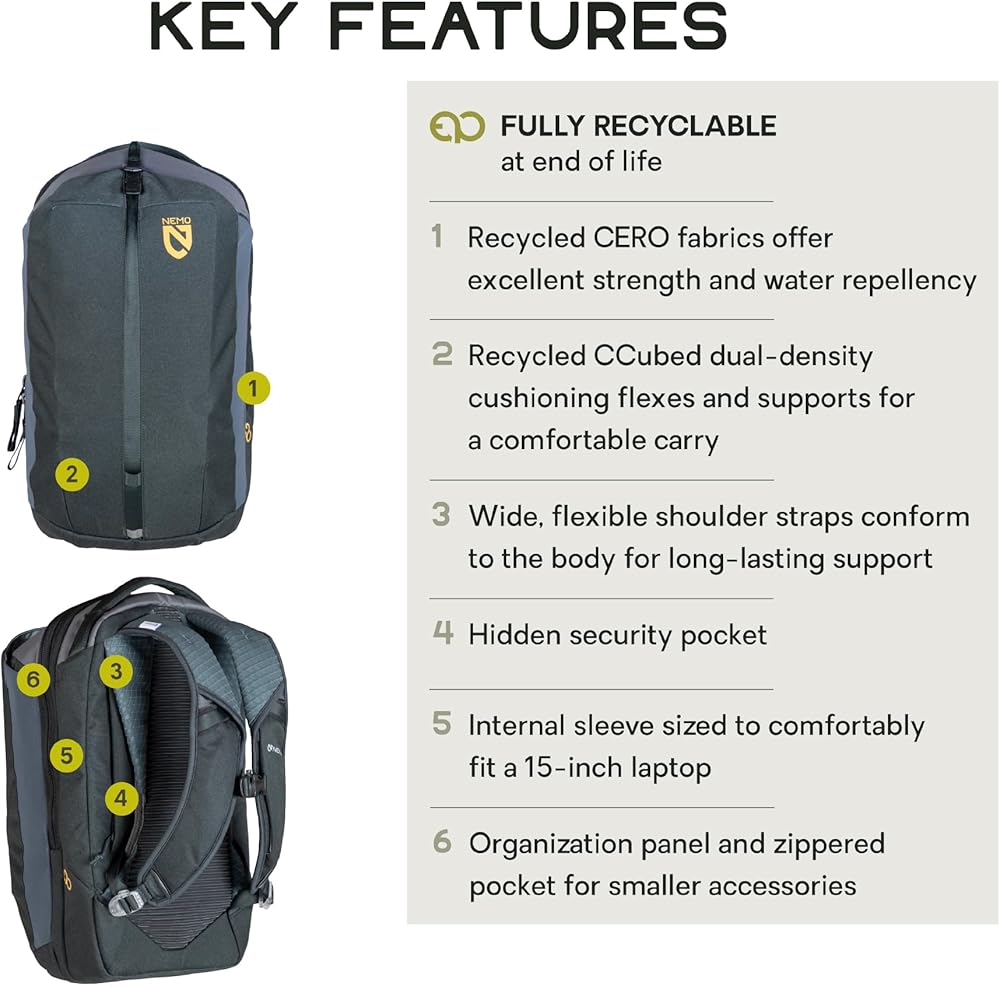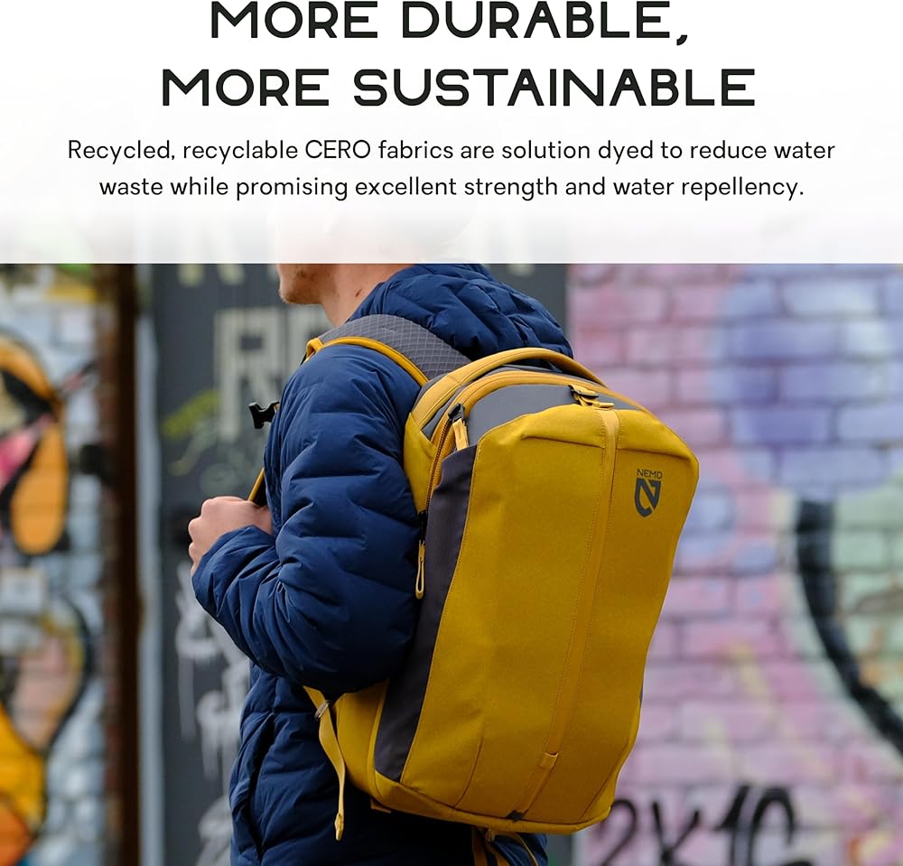 The fully recyclable Vantage daypack is a commuter's workhorse, featuring a revolutionary set of NEMO-exclusive fabrics for an abrasion-resistant, water-resistant exterior and a groundbreaking foam alternative with excellent cushioning and wicking properties. Designed with multipurpose in mind, Vantage can transition from work to play to woods with ease. Its large exterior pocket can easily hold a helmet or shoes when commuting, and extra layers when you're on the trail.