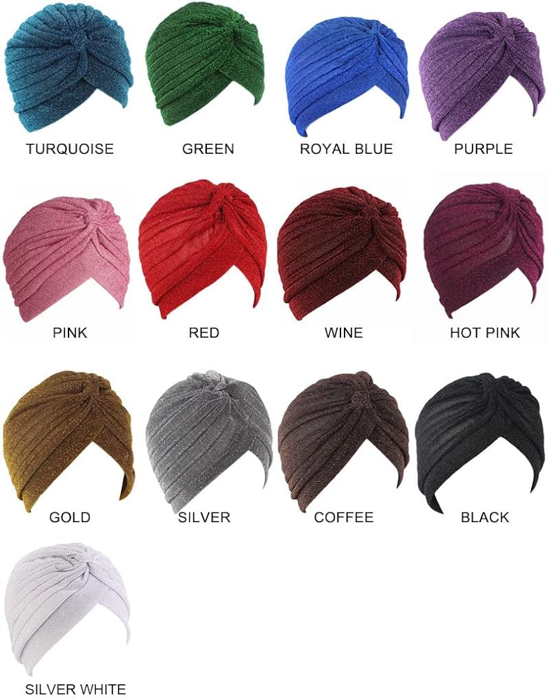 • MATERIAL–The glitter turban Caps are made of polyester.Lightweight and breathable, no fading and no balling-up, comfortable and easy to wear. The premium fabric make you more attractive and elegant.Available all the year.