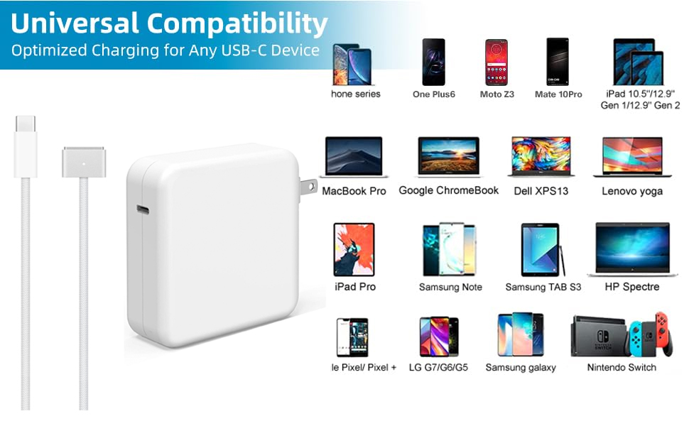 • 【شاحن ماك بوك سريع】: تم تصميم شاحن USB-C الخاص بنا لموديلات ماك بوك على نطاق واسع، بديل لشاحن Mac Book Pro 14 بوصة 2023 2021، شاحن ماك بوك اير الجديد 15 13 بوصة 2023 2022. متوافق أيضًا مع جميع أجهزة الكمبيوتر المحمول بمنفذ USB-C من النوع C الهاتف المحمول والآيباد.