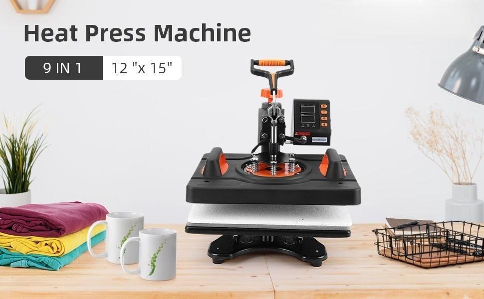 【آلة ضغط حراري مقاس 12x15 بوصة】 يمكن استخدام 9 في 1 للقمصان والقبعات وألواح السيراميك وبلاط السيراميك والأكواب والأكواب ووسادات الماوس وألغاز الصور المقطوعة والحروف والأقمشة والمواد الأخرى. يمكنها نقل الصور والشخصيات الملونة على السيراميك والنظارات والمنسوجات مثل القطن والكتان والألياف الكيماوية والنايلون وما إلى ذلك. توفر المكافأة المكونة من ورقتين من التيفلون حماية كاملة لملابسك.