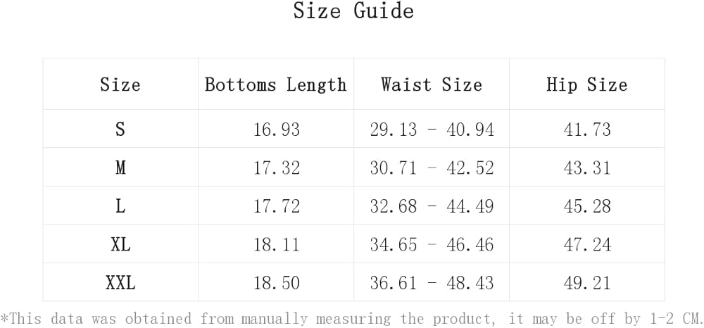XL:Bottoms Length:18.1IN,Hip Size:47.2IN,Waist Size:34.6-46.5IN