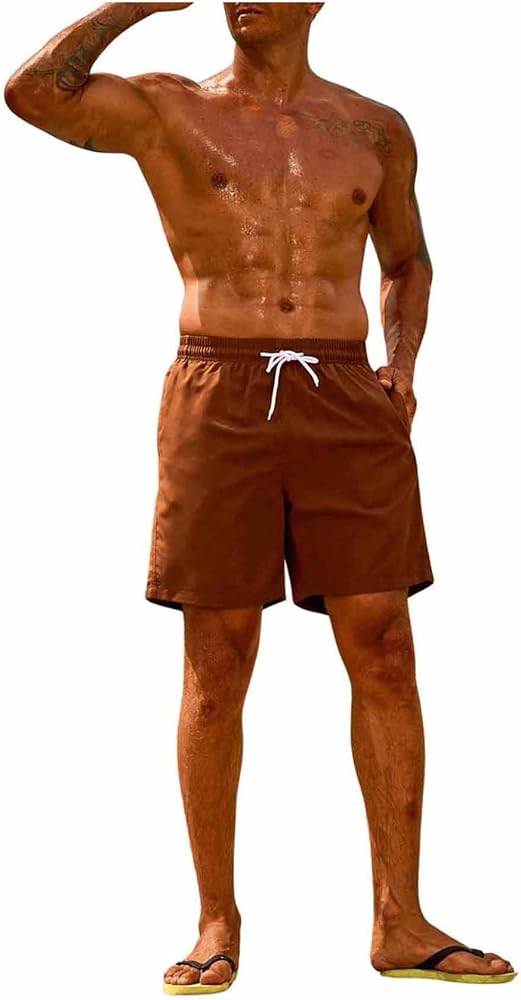 • The swim shorts with elastic waist and drawstring are easily adjustable to fit your waist