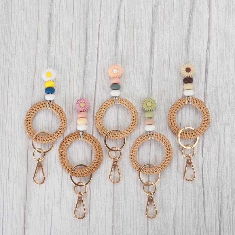 These super cute lanyards include silicon, wooden beads and natural rattan weaving. They are beautiful, lightweight, and very practical.