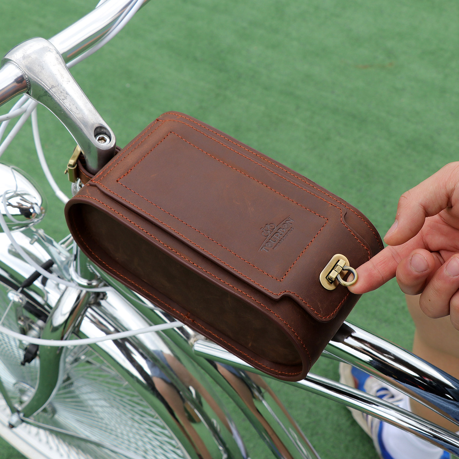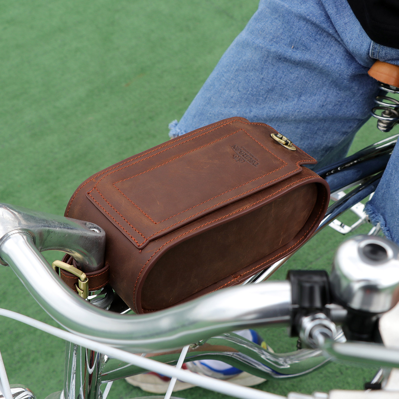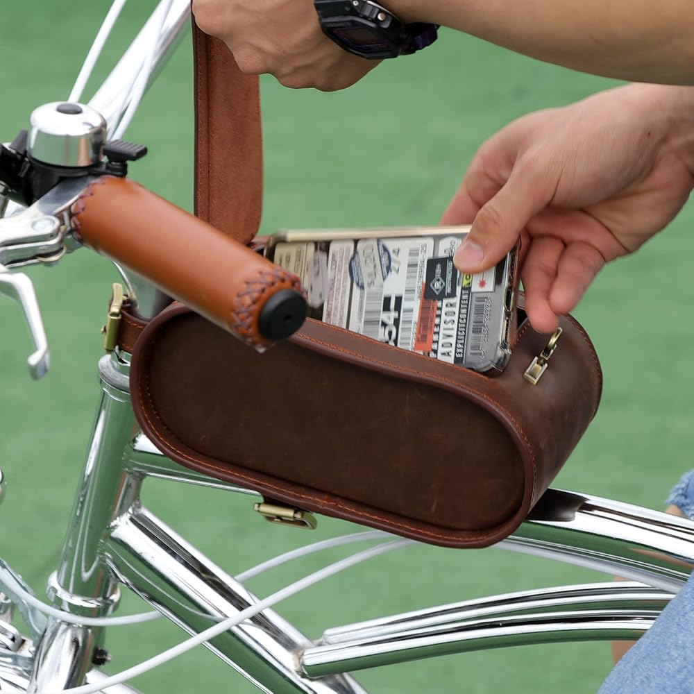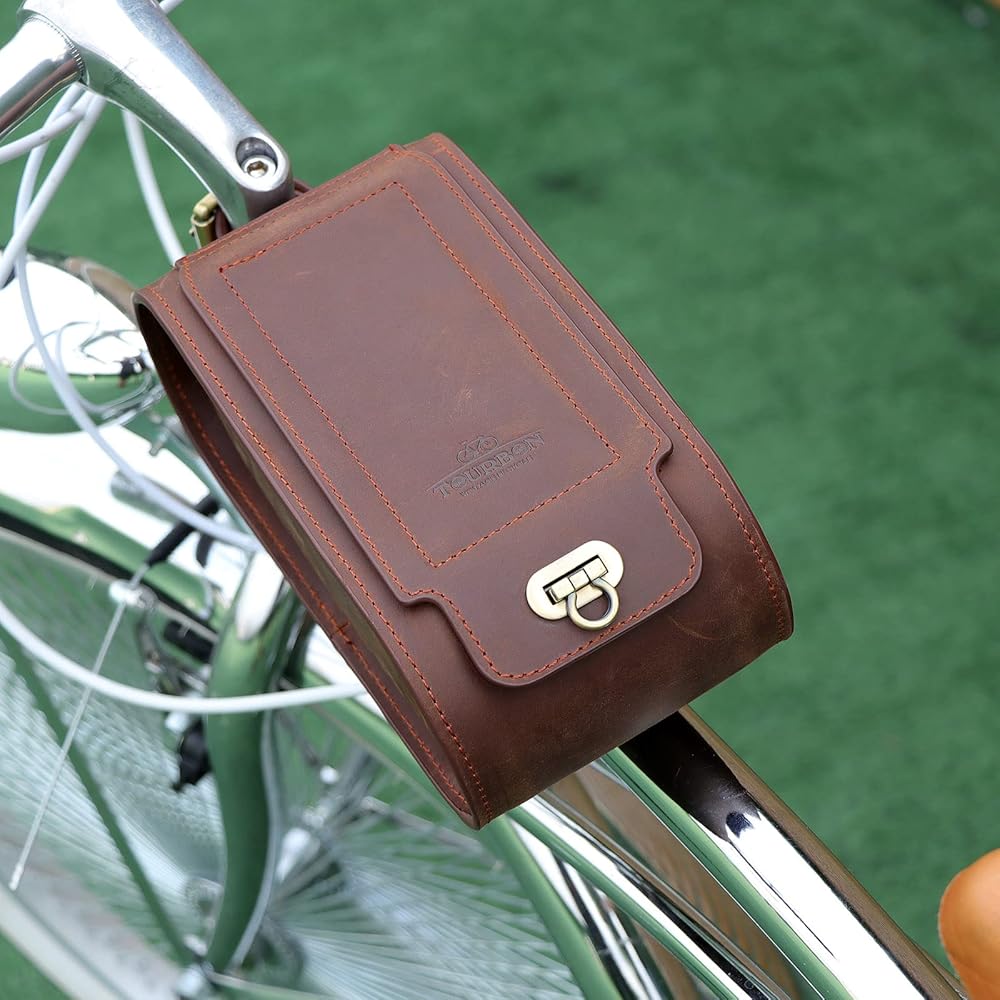 - حقيبة مقود الدراجة TOURBON مصنوعة من جلد عالي الجودة