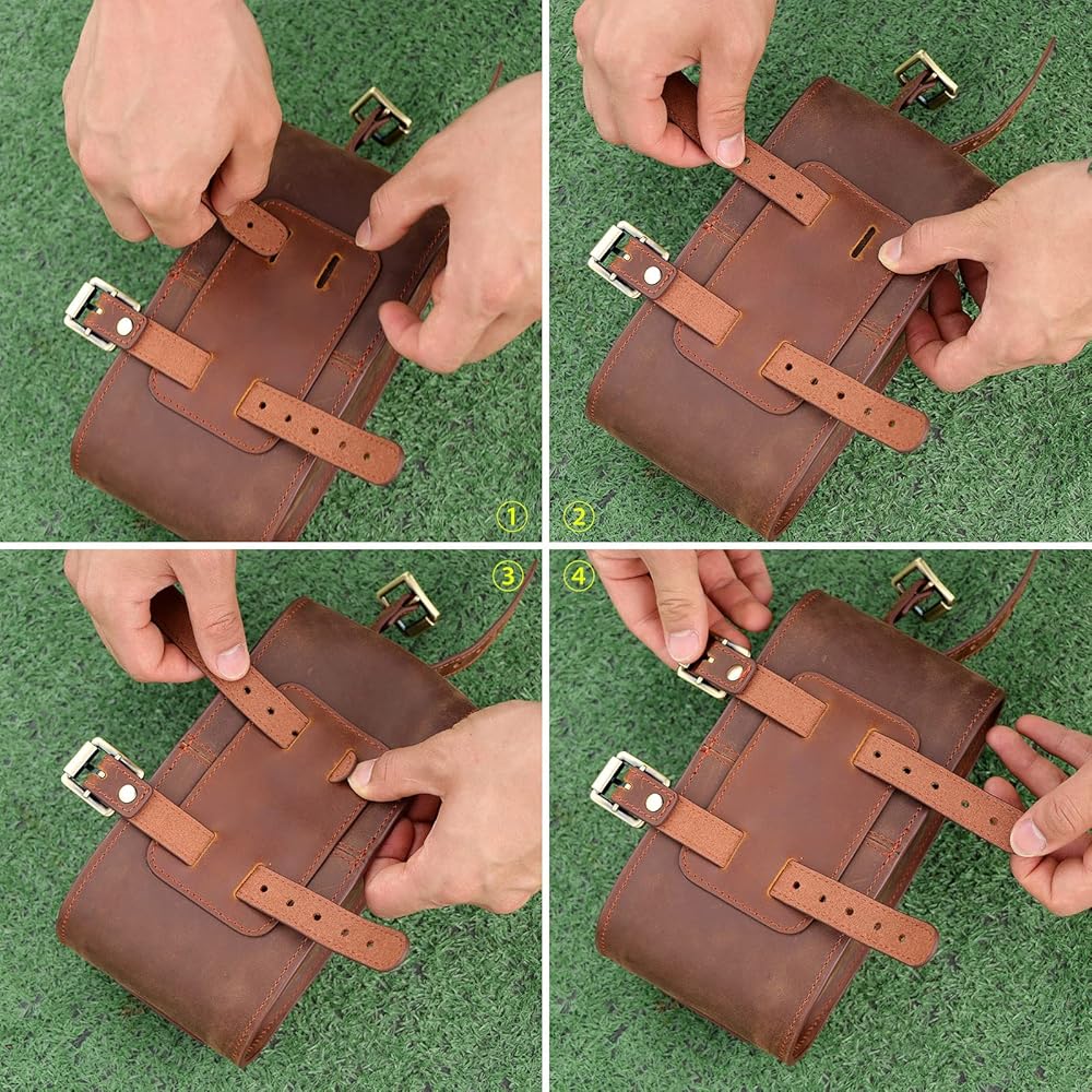 - 3 أحزمة جلدية بإبزيم لسهولة ربط جراب الهاتف برف الدراجة