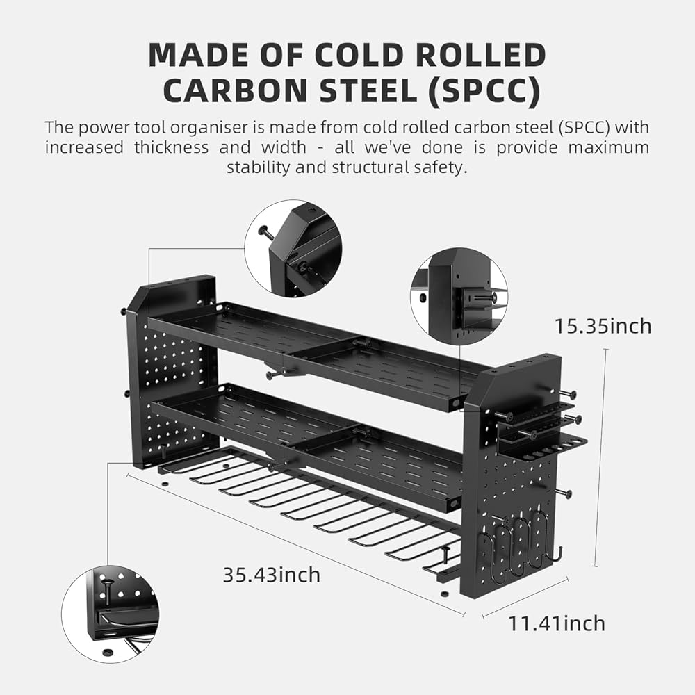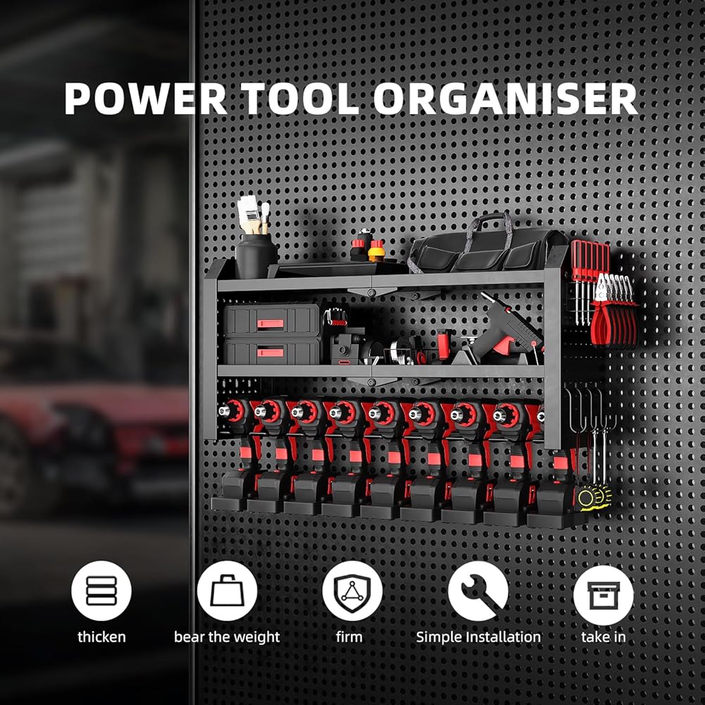 سهل التركيب: يأتي منظم الأدوات هذا مع جميع الأجهزة والتعليمات اللازمة لسهولة التجميع. فهو يوفر مساحة لأدوات الطاقة والملحقات الخاصة بك، مما يجعل عملك أكثر كفاءة ومتعة.