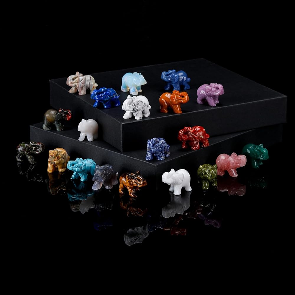 منحوتات الفيل الكريستالية: حجر كريستال الفيل الصغير اللطيف، سطح أملس مع منحوتات حرفية. كل فيل منحوت يدويًا، والحرفية مختلفة قليلاً.