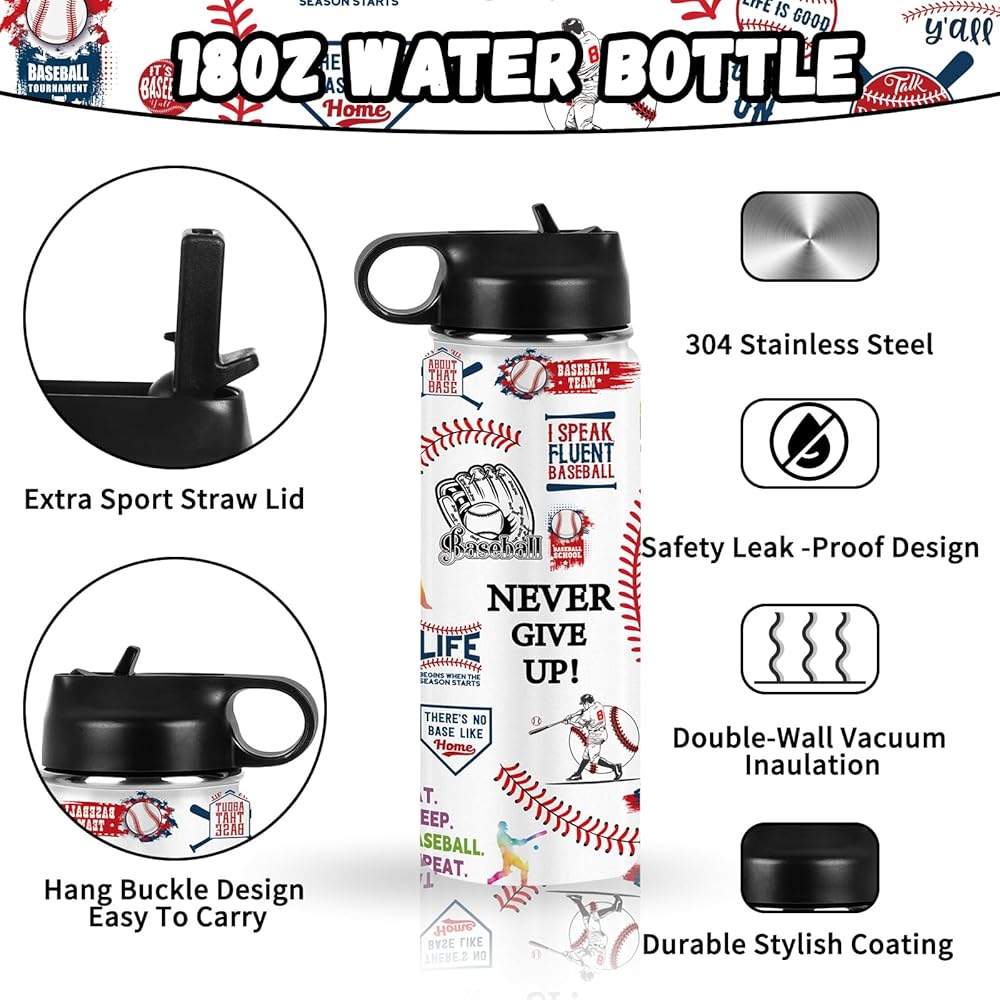 • ⚾Baseball Tumbler - Our 18oz baseball tumbler is made of stainless steel, easy to carry, sturdy and durable, printed with baseball theme pattern, not easy to fade, can well meet your daily drinking needs while hiking, cycling, shopping, sports.