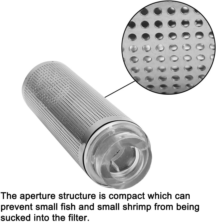تصميم السلامة: تصميم شبكي صغير من الفولاذ المقاوم للصدأ، شبكة دقيقة وناعمة، يمكن أن يمنع امتصاص الروبيان أو الأسماك الصغيرة داخل الفلتر. ويمكن استخدامه أيضًا لاستبدال غلاف الفلتر الكبير جدًا.