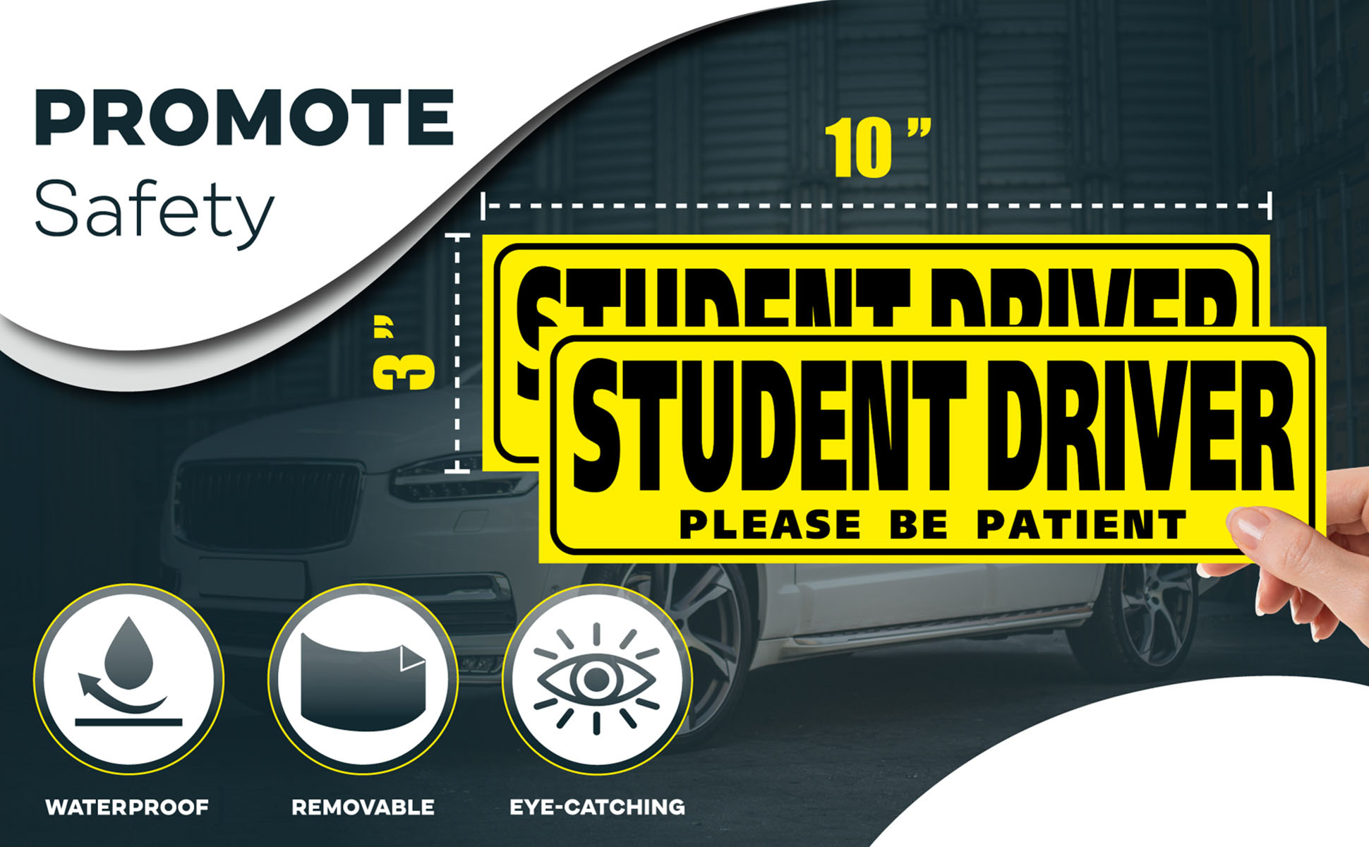مغناطيس سائق الطالب للسيارة - يتضمن عبوتين من لافتة سائق الطالب بقياس 10 × 3 بوصة. مصنوعة من مغناطيس عالي الجودة - مما يضمن بقاء علامة سائق الطالب ثابتة في مكانها. يتم إنتاج لافتات السائق المغناطيسية للسيارة بأحرف سوداء كبيرة وجريئة على خلفية صفراء زاهية.