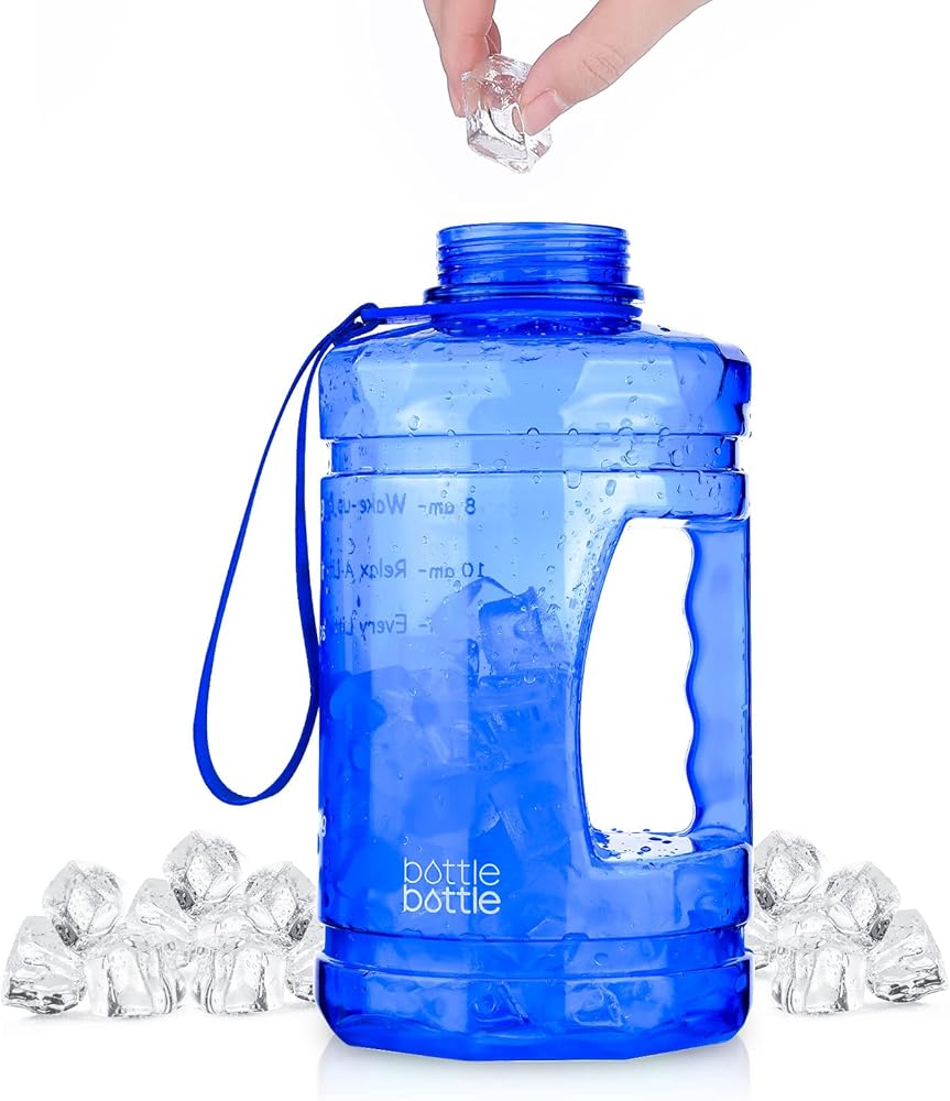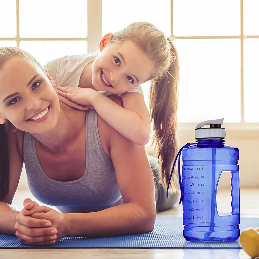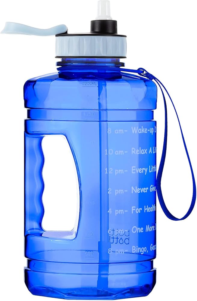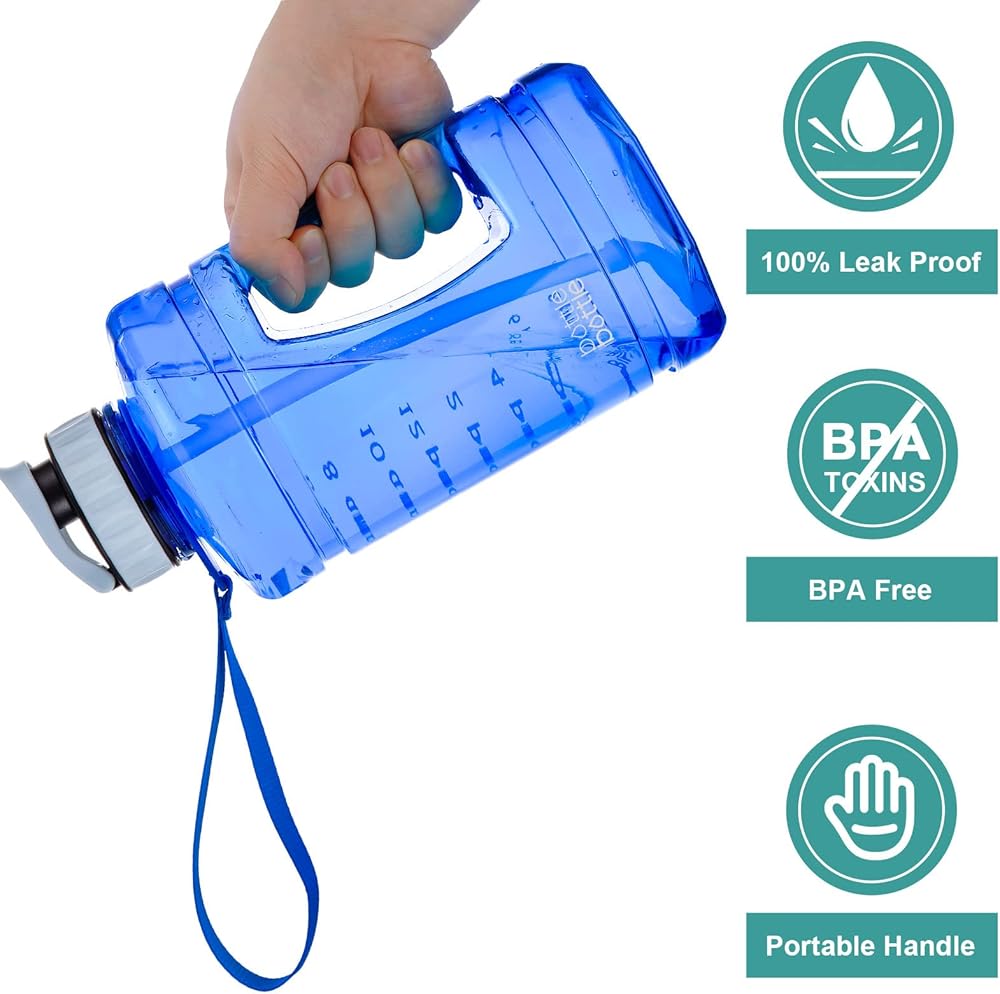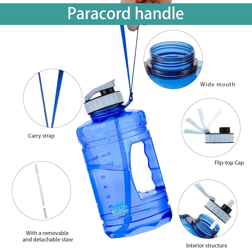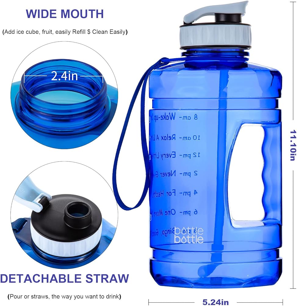 【سعة كبيرة بنصف جالون】: سعة كبيرة 64 أونصة تضمن لك الاستمتاع بزجاجة مياه كاملة دون الحاجة إلى إعادة تعبئتها بشكل متكرر. يساعدك الجزء الخارجي الشفاف والمزود بمقياس قياس على التحقق من الكمية الفعلية من المياه التي تستهلكها بسهولة ووضوح. فتحة واسعة الفم سهلة الملء بمكعبات الثلج والتنظيف.