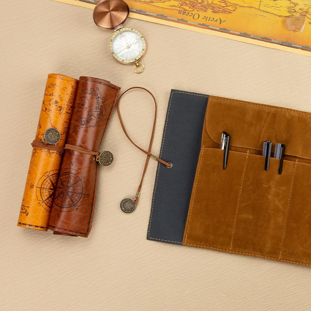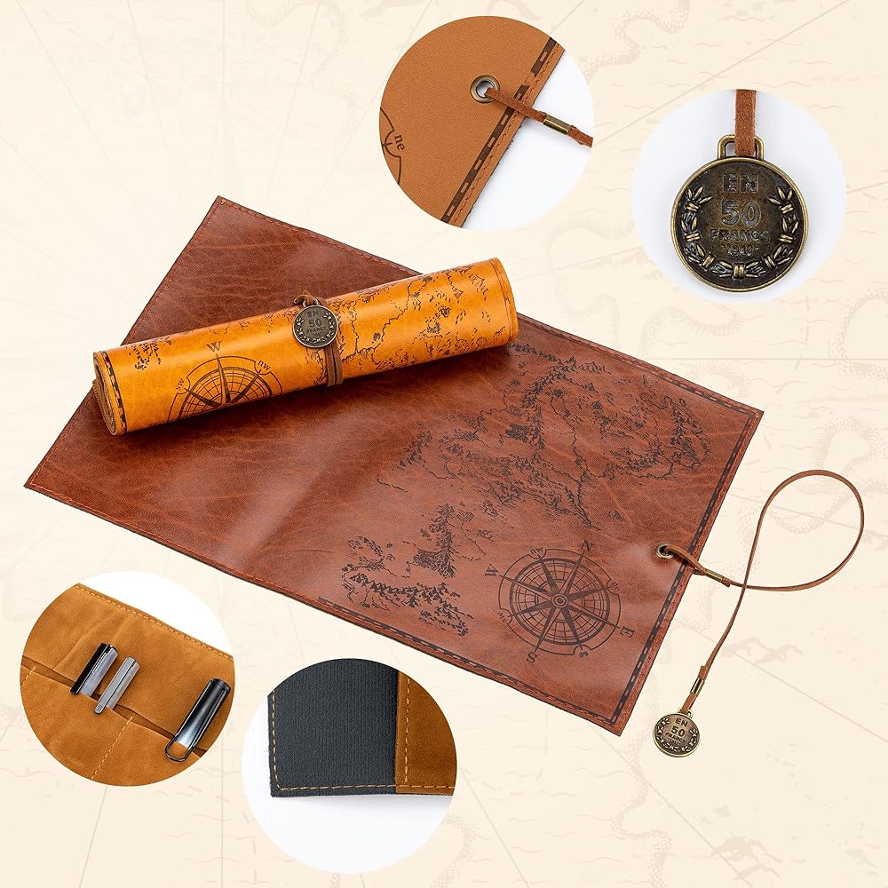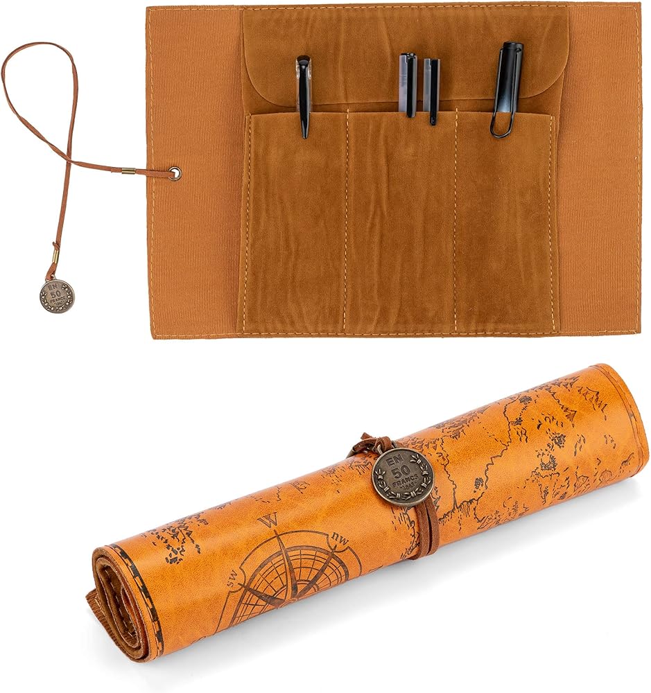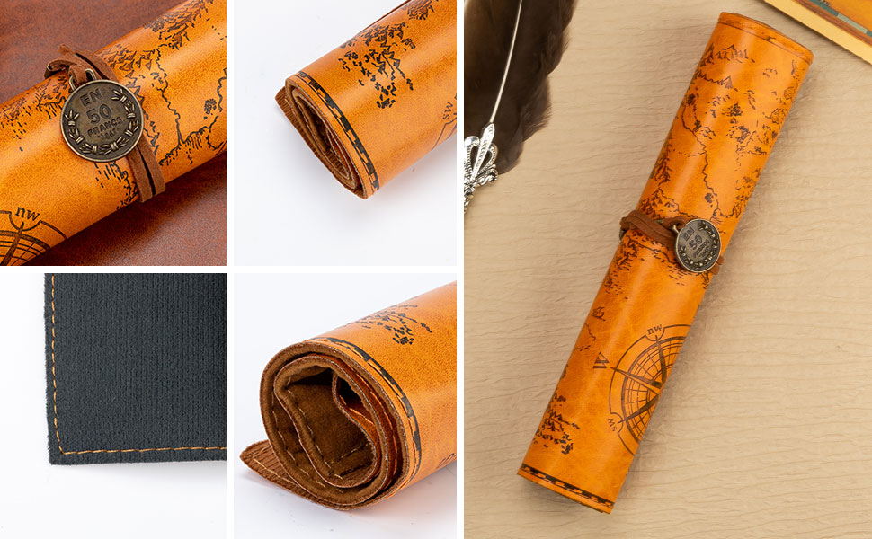 أنيقة ومتينة - مصنوعة من جلد البولي يوريثان الفاخر ودرزات معززة، تضفي حافظة القلم الرصاص هذه جاذبية أنيقة ومتطورة. يضيف التصميم المستوحى من الطراز القديم لمسة عصرية. تتميز الحافظة بغطاء خريطة من الجلد الصناعي المبتكر مع سطح أملس وغير لامع.