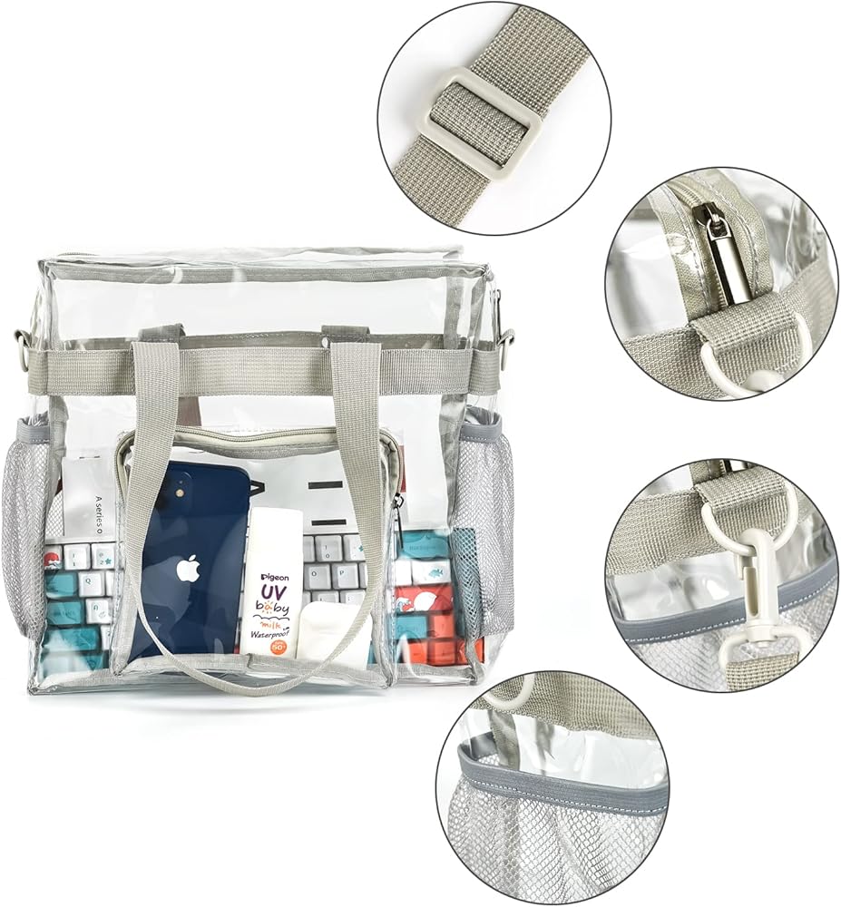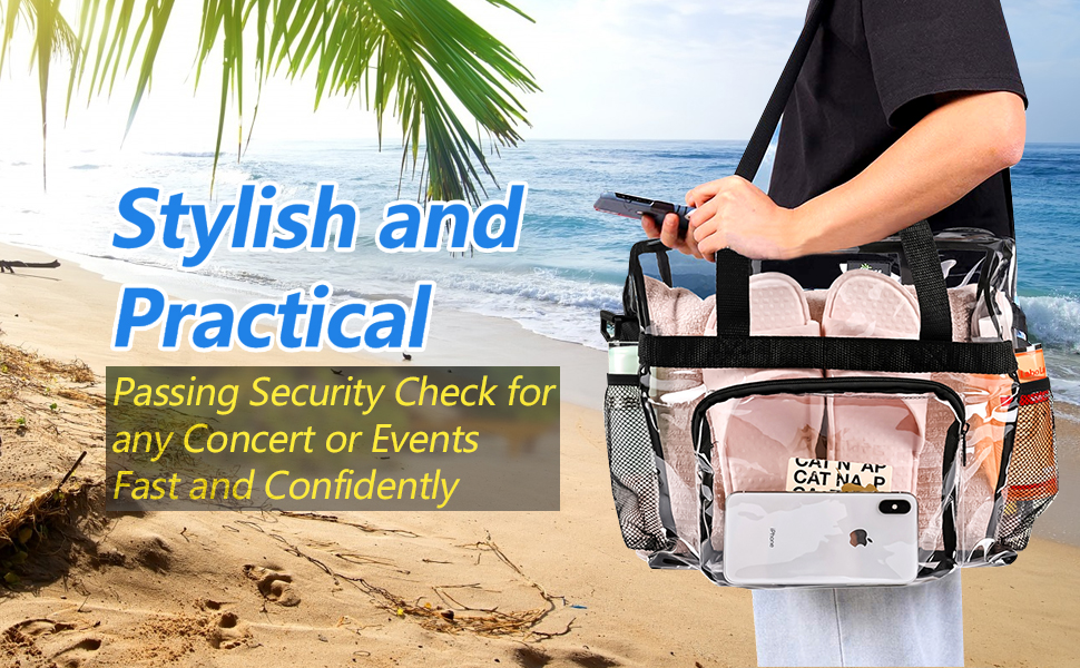 【الأمان والراحة】- حقيبة حمل شفافة تتيح لك سهولة الوصول إلى الأمان! حقائب حمل شفافة مناسبة للسفر والشاطئ وحقائب الغداء الشفافة وحقائب الحفاضات النسائية الشفافة والعاملين في المكاتب والمناسبات الرياضية والحفلات الموسيقية.