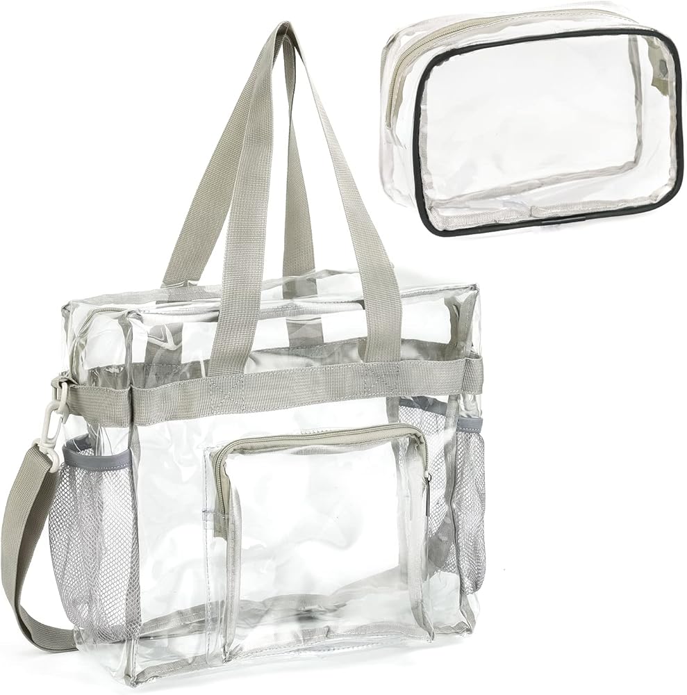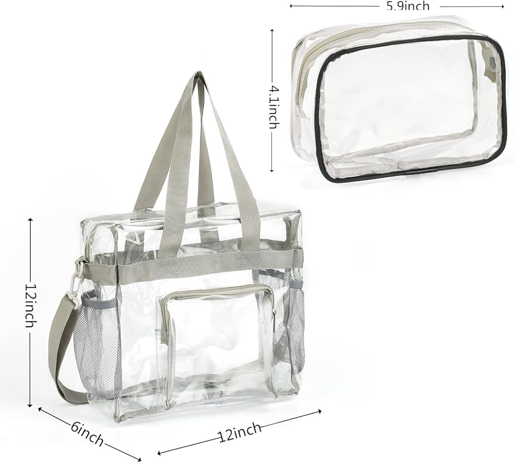حقائب Valleycomfy الشفافة المكونة من قطعتين معتمدة من الاستاد، حقائب شفافة للسفر وصالة الألعاب الرياضية للعمل والرياضة والحفلات الموسيقية - 12 × 12 × 6
