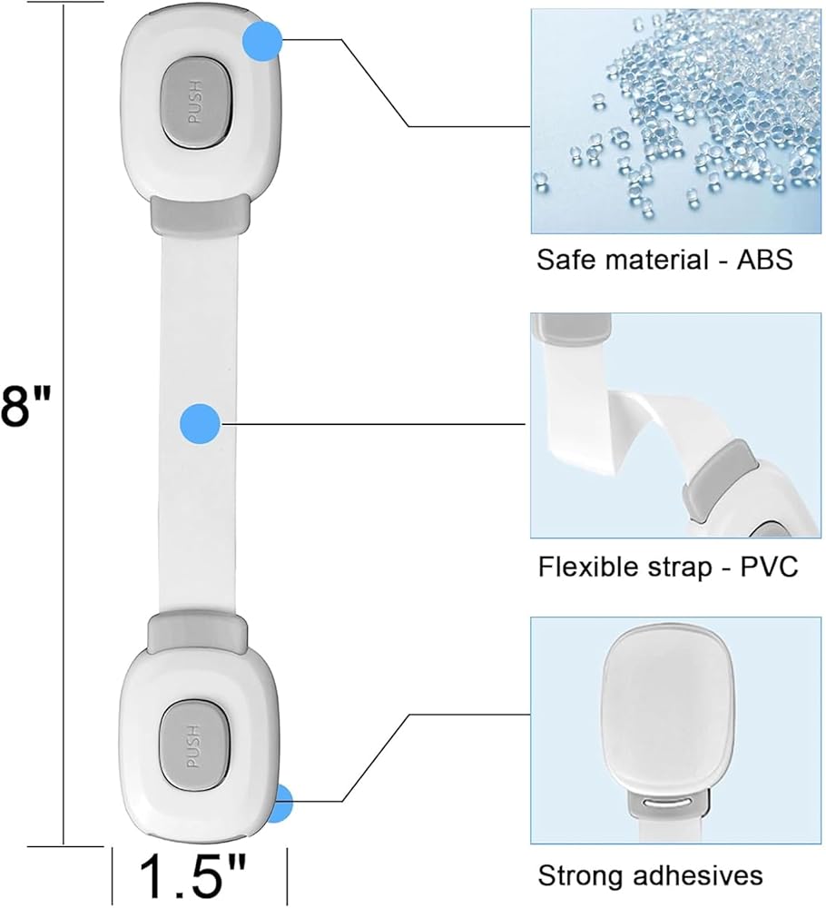 💧استخدامات متعددة - أشرطة مقاومة للأطفال: حزام مرن يعني أنه يمكنك استخدامه في أي مكان ينحني، مثل الخزانات والأدراج والثلاجة والفرن والخزانة ومقعد المرحاض وغسالة الملابس والخزانات والأبواب المنزلقة والأجهزة والحاويات والمزيد. ويمكن أن يلعب طفلك الصغير أو القطط/الكلاب الأليفة في حجرة المؤن بفريزر المطبخ، يرجى استخدام قفل نظام الخزانات.