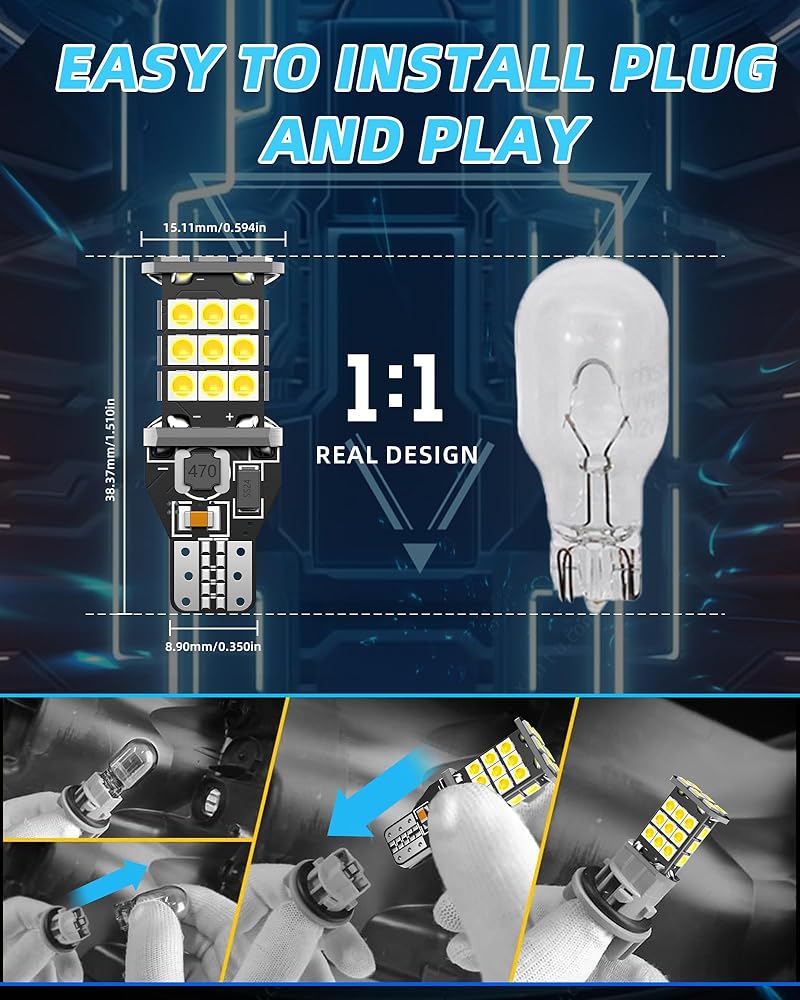 تركيب سريع لمدة 5 دقائق: تتميز لمبة 921 LED بتصميم 1:1 مع مصابيح الهالوجين، دون الحاجة إلى تغيير الأسلاك. طالما أن نموذج المصباح مطابق، يمكن تركيبها وتوصيلها وتشغيلها بسرعة، مريحة للغاية